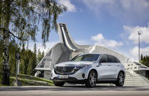 El nuevo Mercedes-Benz EQC (consumo eléctrico en el ciclo mixto: 20,8- 9,7 (25-22,4) l/100 km; emisiones de CO2, ciclo mixto: 0 g/km) es el primer...
