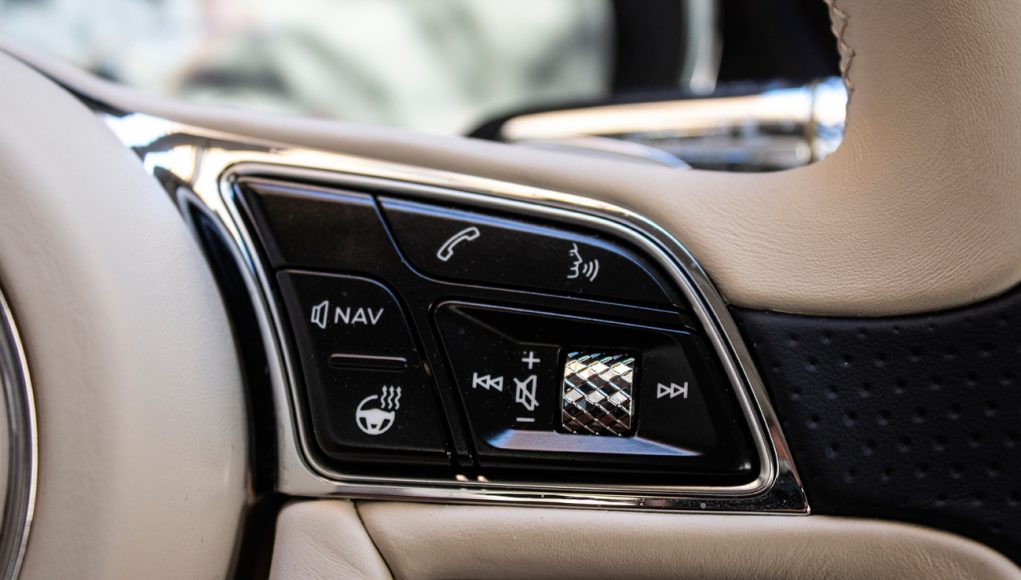 La perfecta combinación del color Moroccan Blue del exterior, con el interior en piel Linen e Imperial Blue Split y el contraste de la inserciones de madera Dark Fiddleback Eucalyptus, conforman un espacio único en el que la tecnología también tiene cabida. Tras el volante de tres radios, encontramos un virtual cockpit totalmente personalizable. En la parte más alta de la consola central una pantalla de 12,3” táctil, es la encargada de gestionar todo el sistema de infoentretenimiento, así como de configurar los canales de audio del increíble sistema de sonido firmado por Naim que hará las delicias de cualquier melómano.