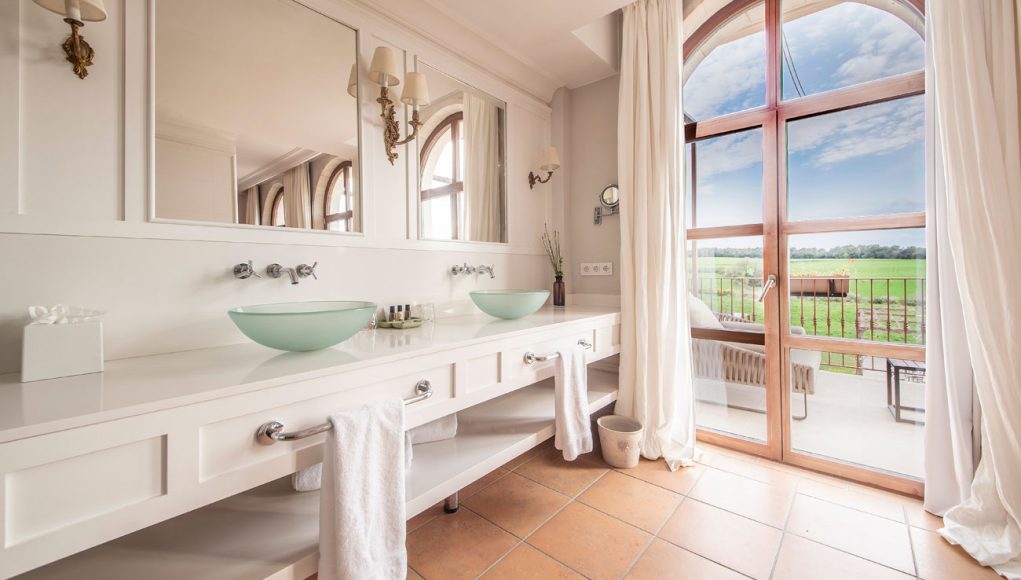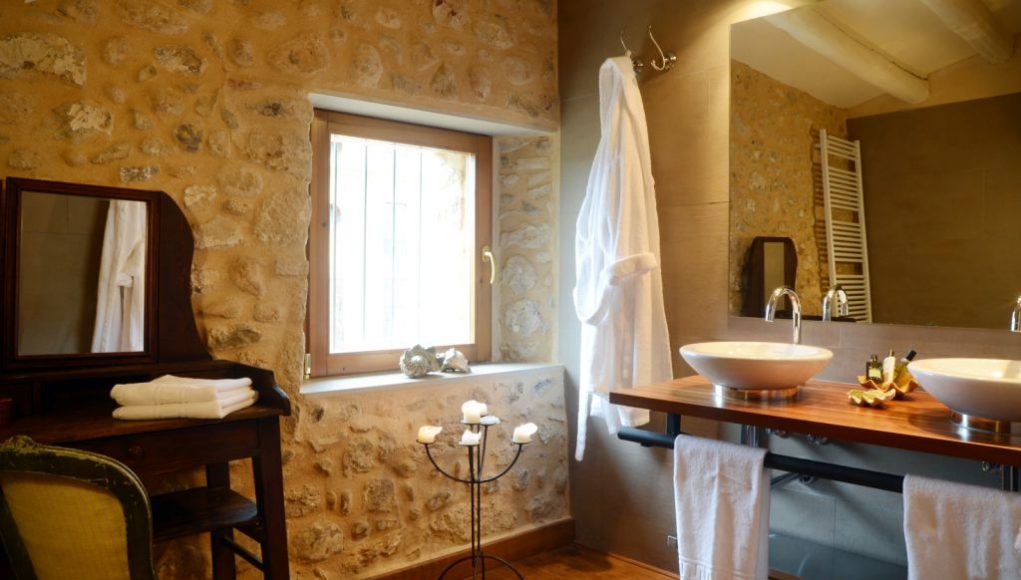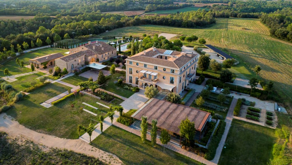 El edificio principal, que alberga el Hotel, es una construcción que bien podría recordar a la de un palacio de estilo francés, fruto del diseño del arquitecto Xabier Gelabert y rodeada por unos frondosos jardines obra del paisajista Martirià Figueras, que dan la bienvenida a sus huéspedes dónde además encontramos una preciosa fuente situada en la entrada principal. Aquí, encontramos 16 lujosas habitaciones, bajo las denominaciones Deluxe, Prestigi, Junior Deluxe y Junior Prestige. Estas últimas son las suites más exclusivas que disponen de una superficie de entre 32 y 48 m2 y que gozan de unas maravillosas vistas a las zonas campestres que rodean al hotel, así como varios salones y como no, el restaurante, donde la apuesta gastronómica mucho tiene que ver con los productos autóctonos y de proximidad.