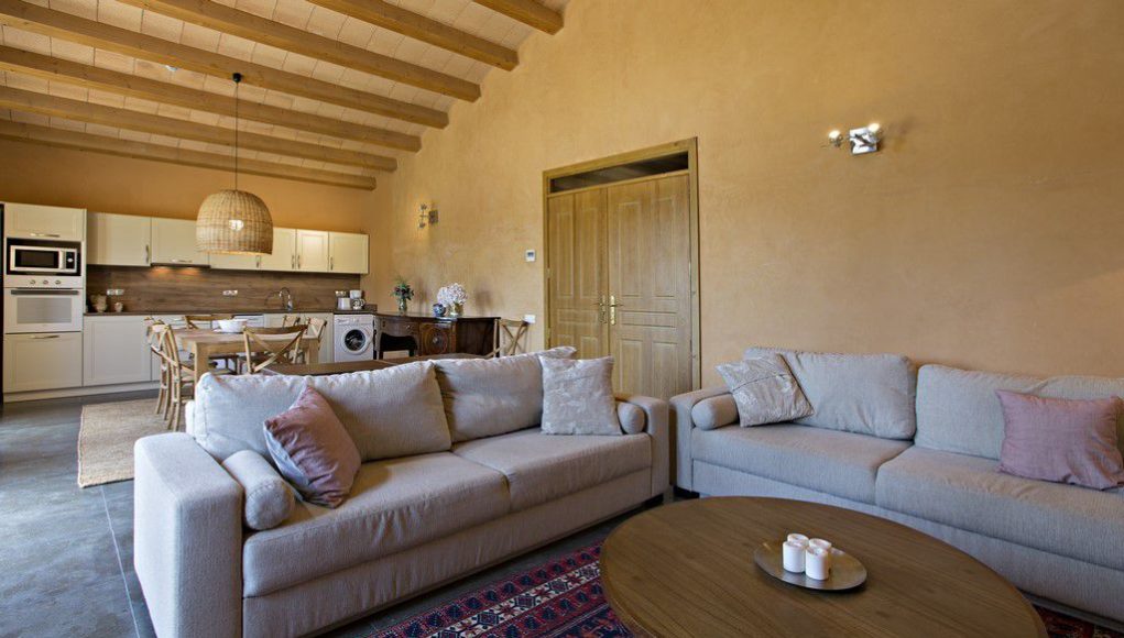 Villa Ana, es la tercera de las edificaciones que podemos encontrar en el recinto. Una villa que disfrutas de unas privilegiadas vistas, y en la que de forma independiente también se puede dar cabida a una familia o un grupo de personas en sus tres habitaciones dobles, un salón y a una espaciosa cocina office.