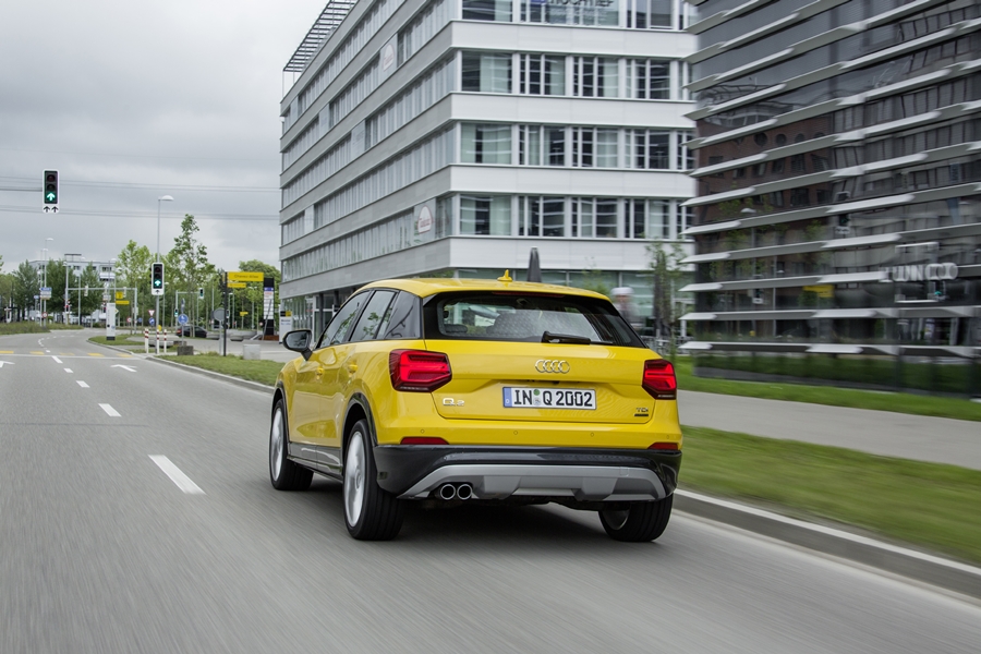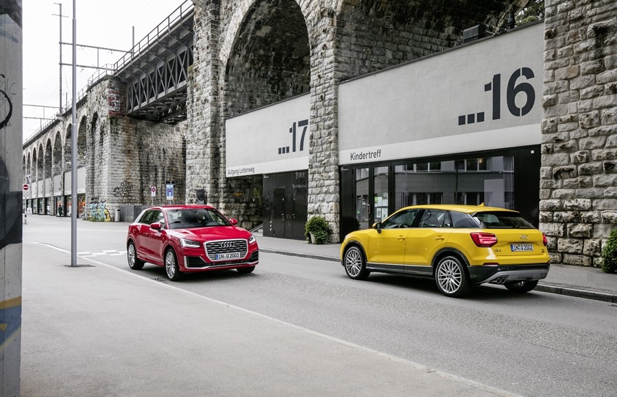 El motor de acceso a la gama Audi Q2 es el excepcionalmente eficiente 1.0 TFSI de tres cilindros. Con una cilindrada de 999 cc, rinde 116 CV (85 kW) y un par máximo de 200 Nm. Por encima está el 1.4 TFSI (150 CV/110 kW) equipado con el sistema de desactivación de cilindros COD (cylinder on demand). Combinado con el cambio manual de seis velocidades, el COD desactiva los cilindros número 2 y 3 cuando se funciona con cargas de hasta 100 Nm y al rodar por inercia cuando el régimen de giro del motor está entre 2.000 y 3.200 rpm. Con la caja de cambios de doble embrague, la desactivación de los cilindros se produce antes, entre 1.400 y 3.200 rpm. Con el cambio S tronic este motor consume de media apenas 5,2 litros de combustible cada 100 km, equivalente a unas emisiones de CO2 de 119 g/km.