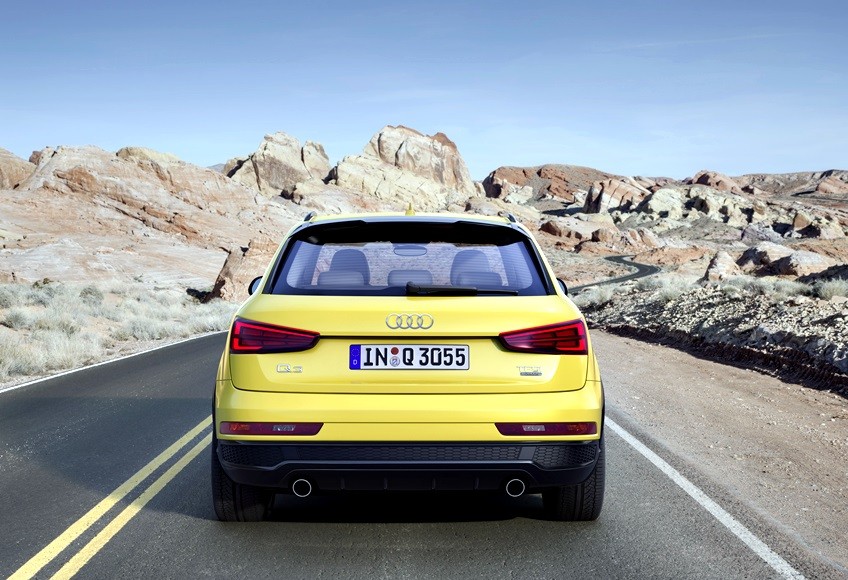 El nuevo paquete exterior S line luce un nuevo aspecto más deportivo. Las entradas de aire reciben una nueva rejilla en forma de diamante y un nuevo elemento abarca el faldón delantero en toda su anchura dividiéndolo en dos segmentos. El color de contraste dominante en la parrilla del radiador y en las tomas de aire es el negro brillante. La línea design aporta al Audi Q3 una imagen particularmente exclusiva. Las entradas exteriores de aire están dispuestas horizontalmente; las protecciones inferiores de la carrocería están acabadas en un tono plata mate en el paragolpes frontal y trasero. La zona de contraste de los paragolpes y los arcos de los pasos de rueda son en color gris piedra.