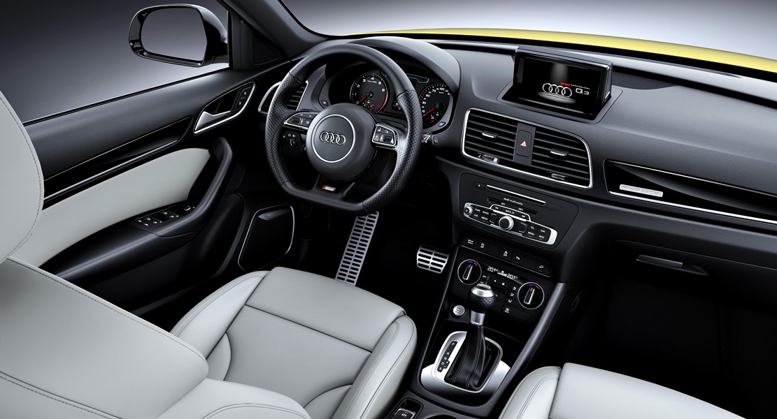 La nueva edición especial deportiva Audi Q3 S line competition se basa en el aspecto que aporta el nuevo paquete exterior de S line. El color negro se traslada a los laterales en los arcos que cubren los pasos de rueda, las molduras de las puertas, los rieles del techo, las carcasas de los retrovisores exteriores y los embellecedores de los marcos de las ventanillas. En la trasera, el spoiler situado en la terminación del techo y la sección inferior del paragolpes están acabados en negro brillante. El Audi Q3 S line competition también hace gala de su carácter dinámico en el interior, con asientos deportivos con regulación lumbar eléctrica tapizados en una combinación de piel negra y tela incluyendo el logo S line en relieve en las secciones centrales. La suspensión deportiva S line, el sistema de conducción dinámica Audi drive select , las llantas de Audi Sport de 19 pulgadas acabadas en negro brillante y con diseño de 10 radios en forma de Y, así como el sistema de información al conductor son de serie en el Audi Q3 S Line competition, cuya comercialización no está prevista inicialmente para el mercado español.