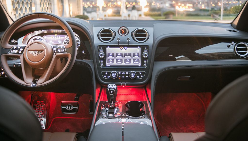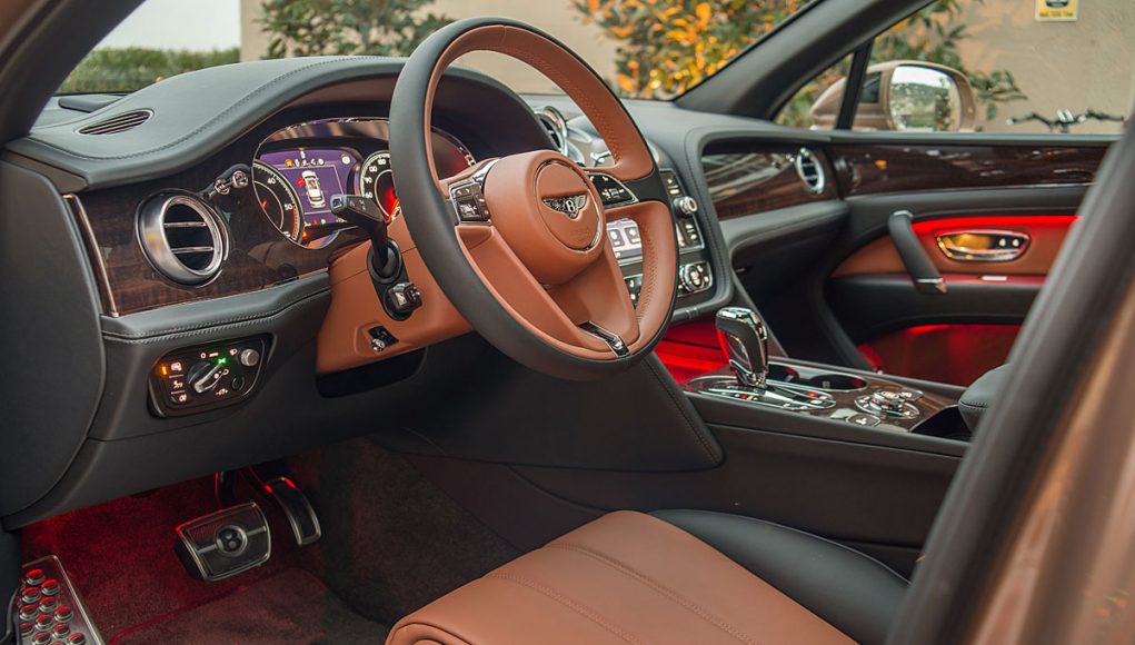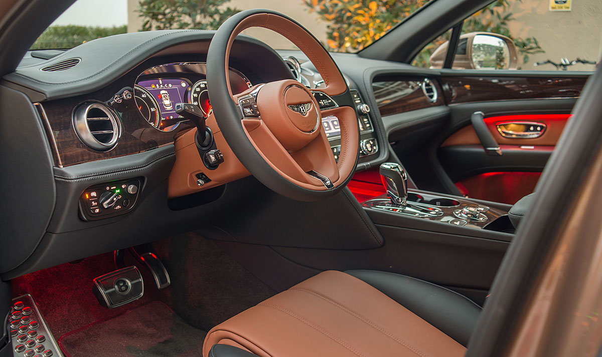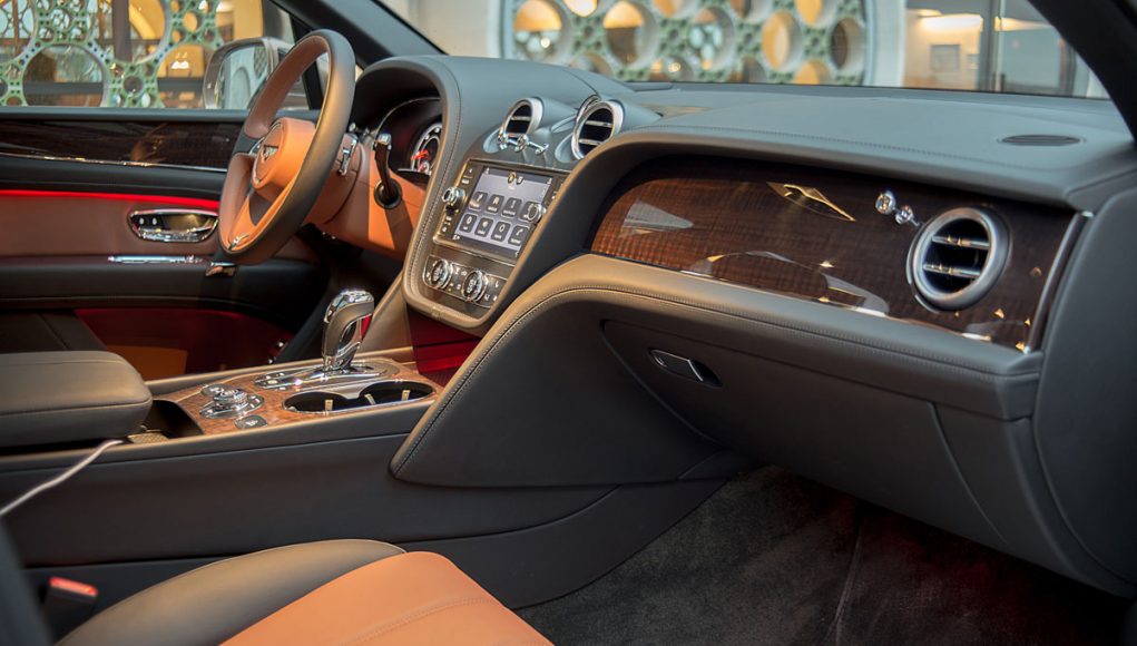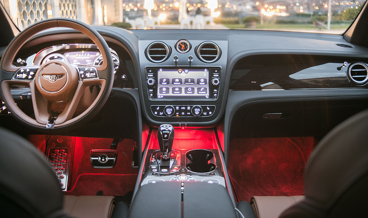 Cada interior está elaborado por curtidores de pieles, por ebanistas que tallan las maderas nobles con las que se recubren los salpicaderos, o por pintores que pintan capa a capa el coche a mano, sin utilizar ningún robot en todo el proceso, para que la gama comprendida de 15 colores, de un resultado como el Bentayga Bronze que lucía nuestro Bentley y que conformaba una perfecta combinación con el interior bicolor en piel Beluga y Saddel.