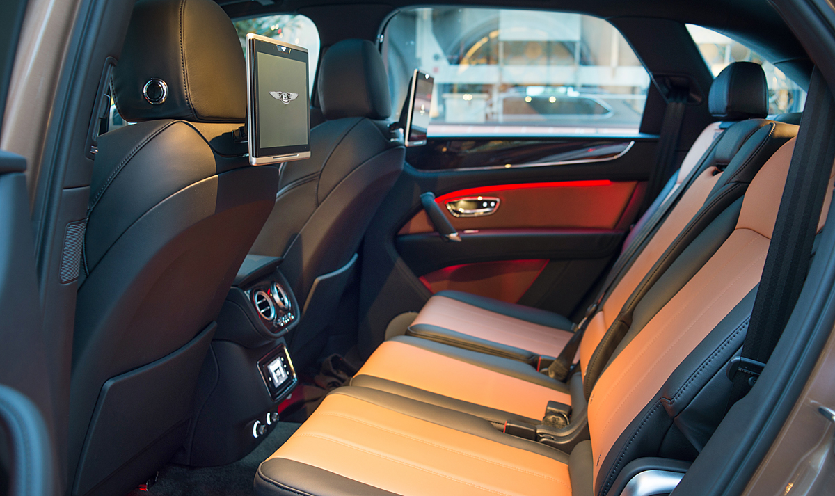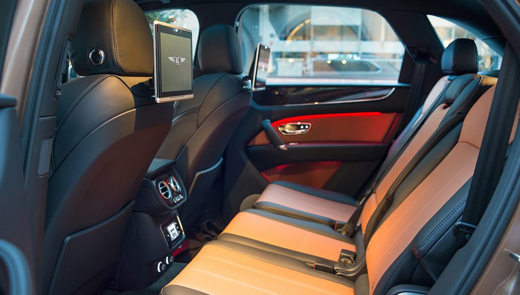 En la parte trasera, encontramos de forma opcional, dos pantallas de 10,2 pulgadas, desde las que los pasajeros, no solo podrán ver películas, escuchar música o ver los datos de la navegación del coche, sino que podrán acceder a diferentes aplicaciones para entretenerse mientras viajan en esta para del Bentayga.