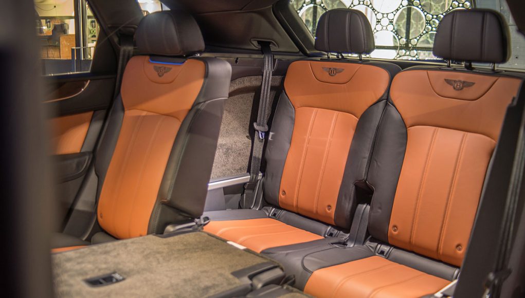 Nuestro Bentley, disponía de la tercera fila de asientos, lo que resta la capacidad del maletero una vez están alzados, llevándola hasta los 215 litros, mientras que en condiciones normales disponemos de 484 litros y con los asientos traseros abatidos de una capacidad de carga total de 1.774 litros. Para abatir o sacar estos asientos, tan solo es preciso pulsar dos botones que encontramos en el maletero y de forma automática los asientos emergen o se esconden el piso del mismo.