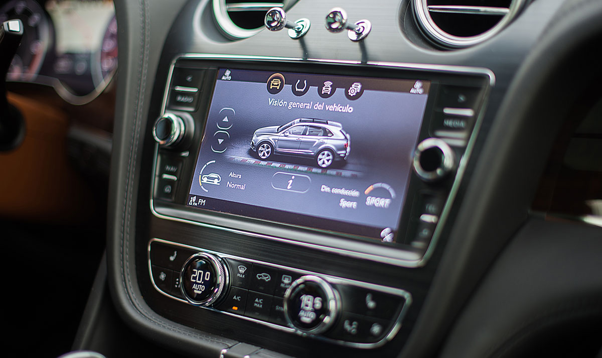 En lo que a equipamiento se refiere, es el Bentley más tecnológico de toda la gama, por ello, elementos como el Head-Up Display a color, el sistema de visión nocturna, las cámaras de 360º o el sistema de mantenimiento de carril, son elementos nuevos para la marca que encontramos en el Bentayga. A parte de estos más destacados, encontramos también asistente de arranque en subidas, ABS, EBD, TPMS, acceso y arranque sin llave, portón trasero eléctrico, cierre electroneumático de las puertas, detector de coches en ángulo muerto, WI-Fi y un disco duro de 60gb entre muchos otros elementos que pueden completarse con el equipamiento opcional para dejar un Bentayga único.