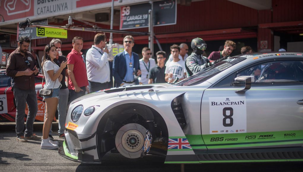 Gracias a la cortesía de Bentley Barcelona, así como de Bentley y Bentley Motorsport, nuestro equipo de redacción acudió a la cita invitado, disfrutando desde dentro el que sería un fin de semana excepcional viendo competir al Continental GT3 a manos de sus pilotos, entre los que encontramos Andy Soucek, piloto español, que desde hacer tres temporadas defiende al equipo Bentley Motorsport en las Blancpain Series, y que quedó en un merecido cuarto puesto pilotando el GT3 con el dorsal nº 8 tras haber partido desde el puesto 24 al inicio de la carrera.