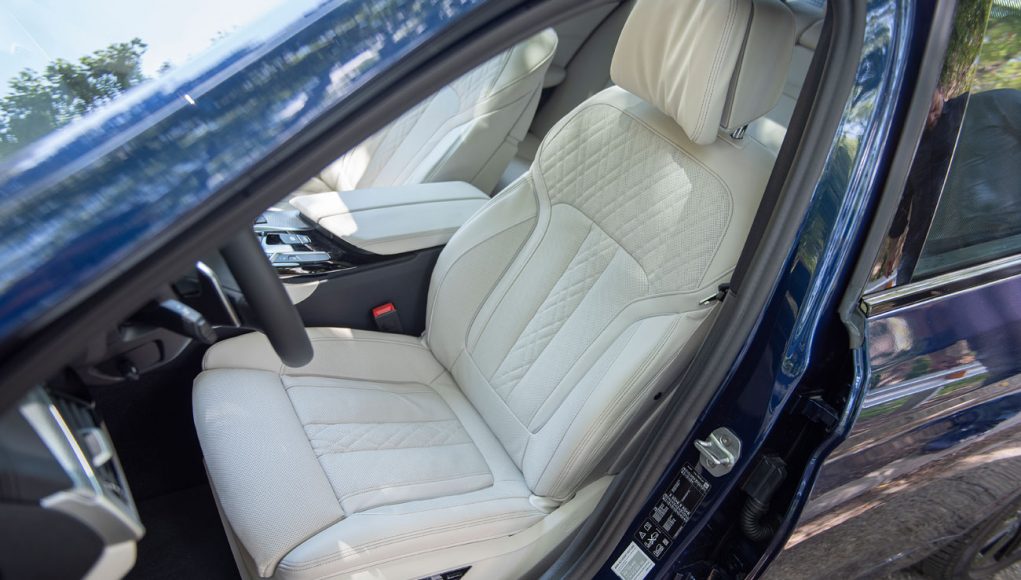 Su habitáculo rezuma un ambiente premium por los cuatro costados, además de ofrecer elementos tecnológicos que hemos ido viendo en otros modelos de la marca en las últimas pruebas llevadas a cabo. La tapicería de cuero Nappa Elfenweiss en combinación con el salpicadero de piel negra, las molduras de aluminio y el color exterior Azul Mediterranean Blue son la perfecta combinación que se complementa con unas preciosas llantas de 19″ en color negro brillante.