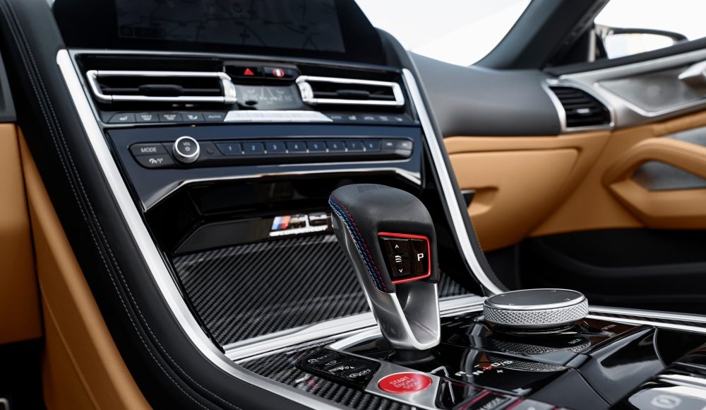 El diseño interior de las nuevas versiones del BMW M8 Competition crea una armoniosa combinación de aire deportivo y ambiente lujoso. En el característico estilo M, hay elementos de contraste rojos en los botones M del volante M de cuero y en el botón start/stop en el centro de la consola. El selector del cambio de nuevo diseño con interruptor Drivelogic tiene una superficie de cuero con el logo M grabado y costuras con los colores de M GmbH. También presenta un atractivo corte con iluminación “en cascada” integrada para darle más énfasis. Las molduras interiores estándar en Carbon Fibre también acentúan el toque deportivo en estas versiones de altas prestaciones.