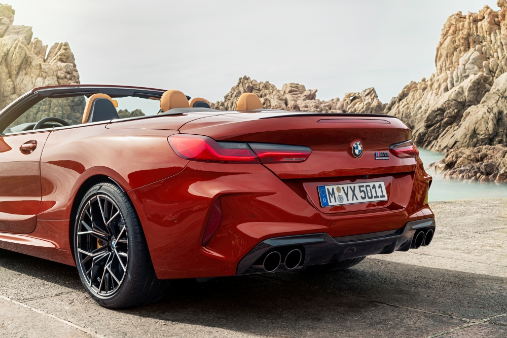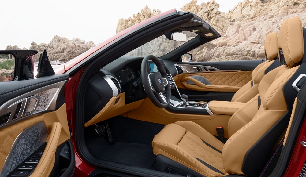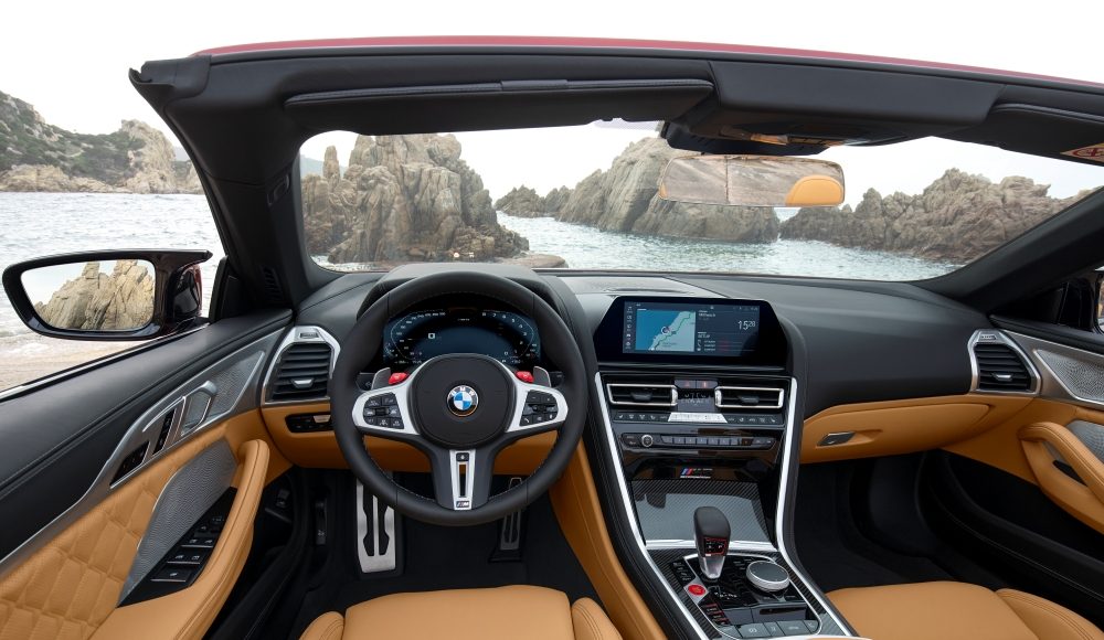 Los rasgos que definen el carácter del nuevo BMW M8 Competition Coupé incluyen el contorno de doble burbuja en su techo de polímero reforzado con fibra de carbono (CFRP), al estilo de los coches de competición. Los pasajeros del nuevo BMW M8 Competition Cabrio están protegidos de los elementos por una capota textil de alta calidad que se tensa sobre el habitáculo. Esta capota multicapa se abre o cierra en 15 segundos al pulsar un botón. El mecanismo eléctrico se puede activar en marcha, hasta una velocidad de 50 km/h. Cuando está cerrada, la forma de la capota confiera a este descapotable una clara silueta de cupé de tres volúmenes. Una vez abierta, queda oculta bajo una superficie plana que armoniza con la del salpicadero, las puertas y el acabado de los paneles laterales. Esto realza tanto las dinámicamente extendidas líneas de los flancos como la consonancia estilística entre el exterior y el interior.