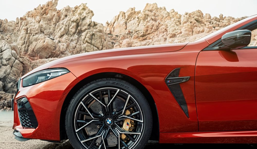 Las aletas delanteras son particularmente anchas en estas versiones, lo que crea una superficie iluminada adicional sobre los musculosos arcos de rueda. También dejan espacio para la gran anchura de vías y de neumáticos, una de las causas de la espectacular dinámica en curva del coche. Otra característica exclusiva de este deportivo de altas prestaciones son los prominentes Air Breathers integrados en las branquias M en las aletas delanteras, que forman el punto de inicio de la dinámica superficie lateral. Los nuevos BMW M8 Competition Coupé y BMW M8 Competition Cabrio se entregan con llantas M forjadas de aleación ligera de 20 pulgadas, cuyo acabado mecanizado brillante con estructura 3D con y su diseño bicolor generan reflexiones de luz que inspiran exclusividad y agilidad en la misma medida.