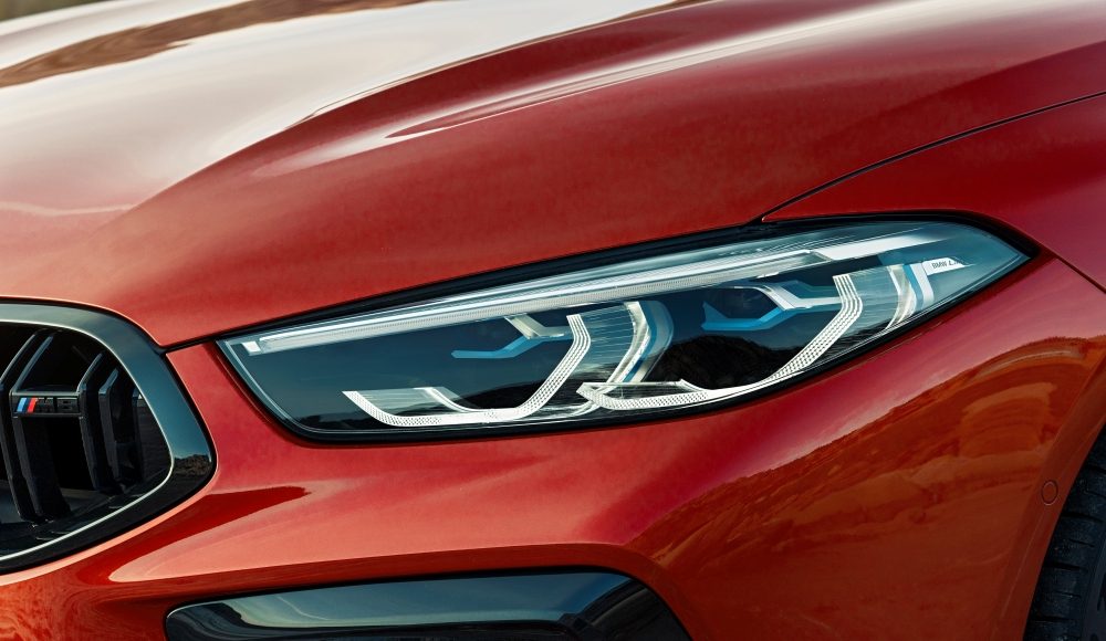 Con sus sofisticados grupos ópticos, los esbeltos dobles faros en cada lado de la parrilla reproducen la imagen característica de los BMW presentes y pasados. Todas las versiones del nuevo BMW M8 Competition está dotadas de serie con faros Adaptive LED, que generan la iluminación diurna, el haz de cortas y el de largas desde ambas lámparas. Los faros opcionales BMW Laserlight con Selective Beam ofrecen un alcance en el haz de largas de hasta 600 m y se pueden identificar por los elementos azules en el interior de los grupos ópticos.