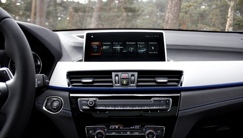 La posición de conducción (reducida en 20mm) que adoptamos nos permite ver justo por encima del salpicadero y hasta el final del morro del coche, siendo más bien parecida la de un Serie 1, más que a la de un SUV, lo que enfatiza más si cabe su lado más deportivo. El salpicadero, está ligeramente orientado hacia el conductor, lo que premia la ergonomía a la hora de utilizar todos los mandos o bien, ver la pantalla de 8” táctil de infoentretenimiento de la consola central, pasando por un climatizador cuyos mandos han sido rediseñados.