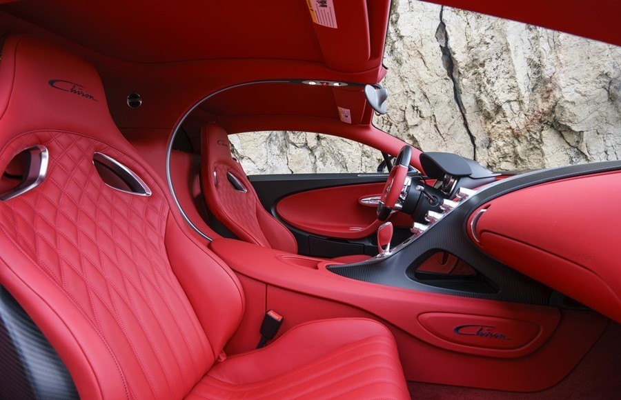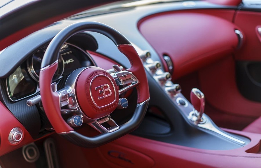 Una versión muy especial ha sido la elegida para su presentación al mercado americano, fabricada en fibra de carbono de color azul, siendo una de las opciones más caras del Chiron, y con el interior en color rojo laureando así los colores de la bandera americana.