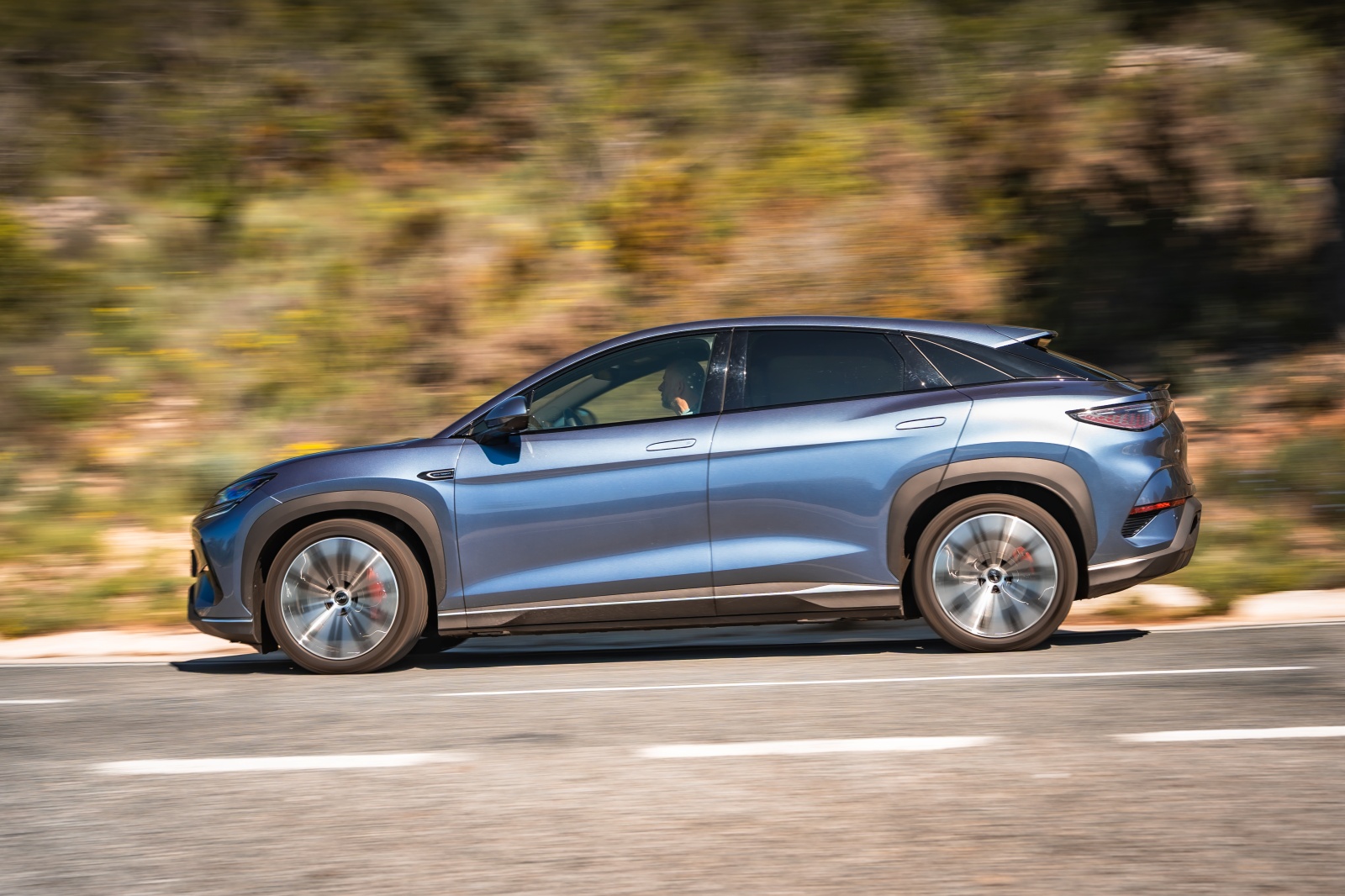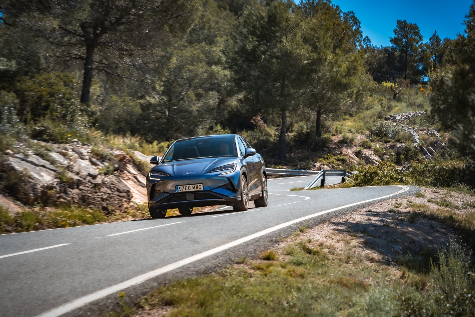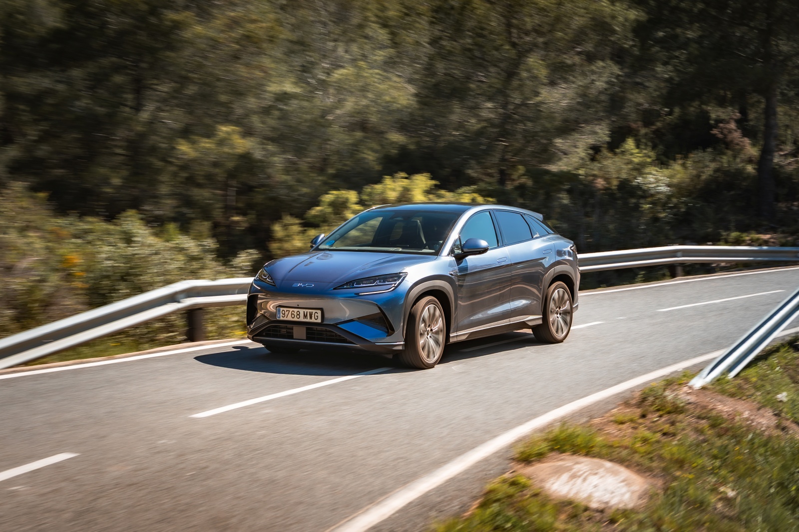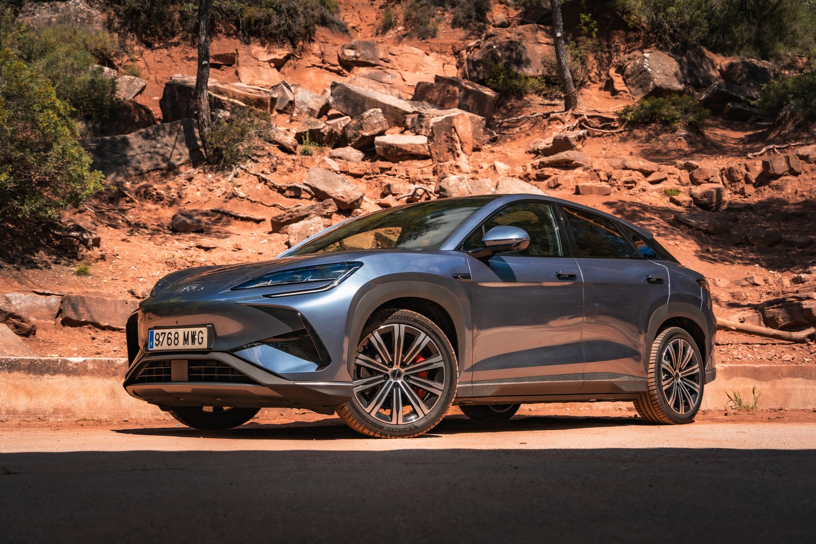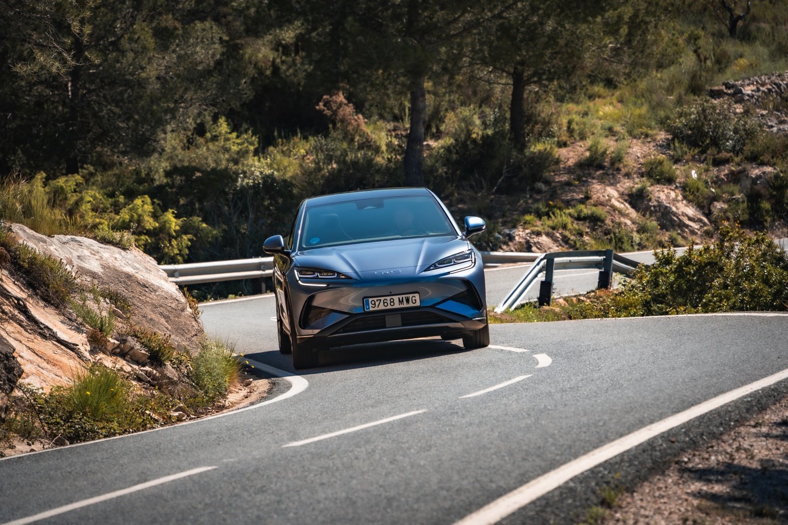 La dinámica del BYD Sealion viene avalada por soluciones como una doble horquilla superpuesta en el tren delantero y un sistema multibrazo en la parte trasera con amortiguadores de frecuencia selectiva, lo que se traduce en un alto nivel de confort en cualquier de sus cinco plazas, pero poco dinámica a la hora de conducir por ejemplo por una carretera revirada. Una de las virtudes de los BYD es que gracias a la Plattform 3.0 ubicando las baterías como parte del chasis, hacen que el centro de gravedad mejore tanto , que a veces te olvidas de que entre manos llevas 2.400 kg de masa.