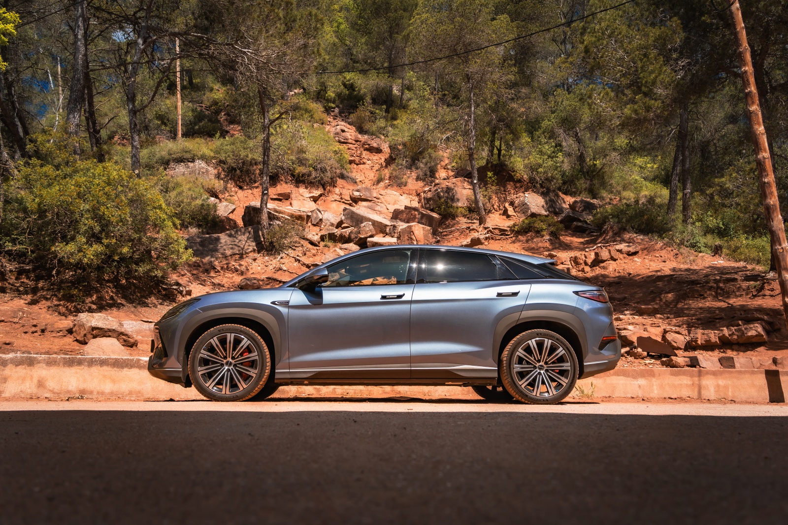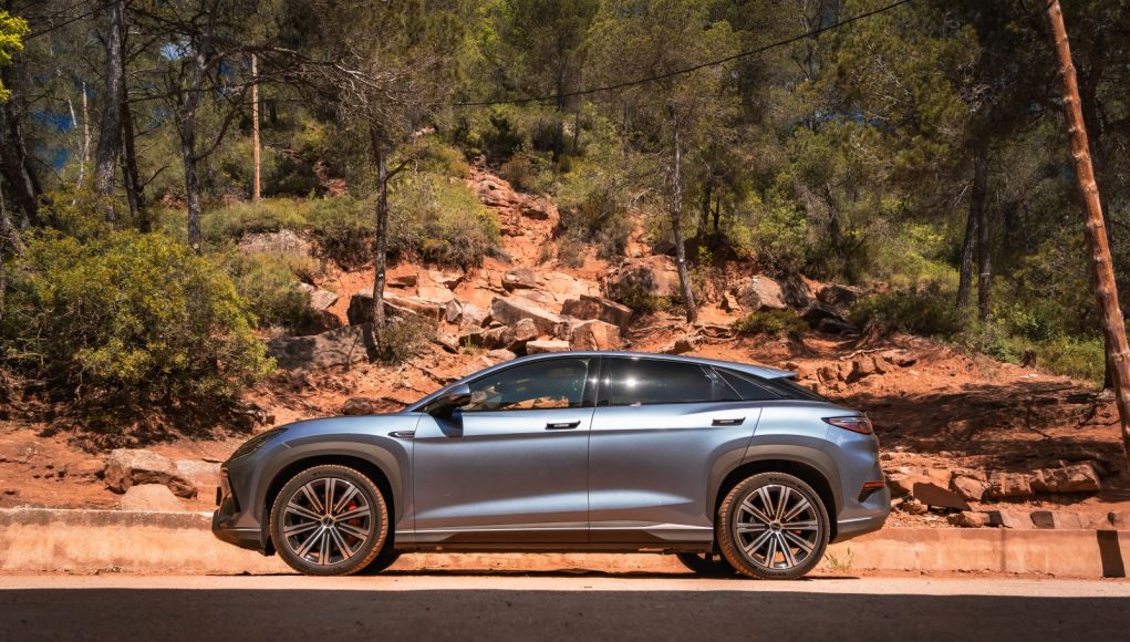 La vista lateral nos deja ver esa silueta de SUV coupé donde la línea del techo finaliza en un alerón como extensión de este que se complementa con una luneta muy inclinada. Aquí también destacan las llantas de 20” calzadas con unos neumáticos en medidas 245/45/20 para ambos ejes. En el portón trasero encontramos un segundo deflector, así como unos pilotos LED que recorren toda la anchura del coche.