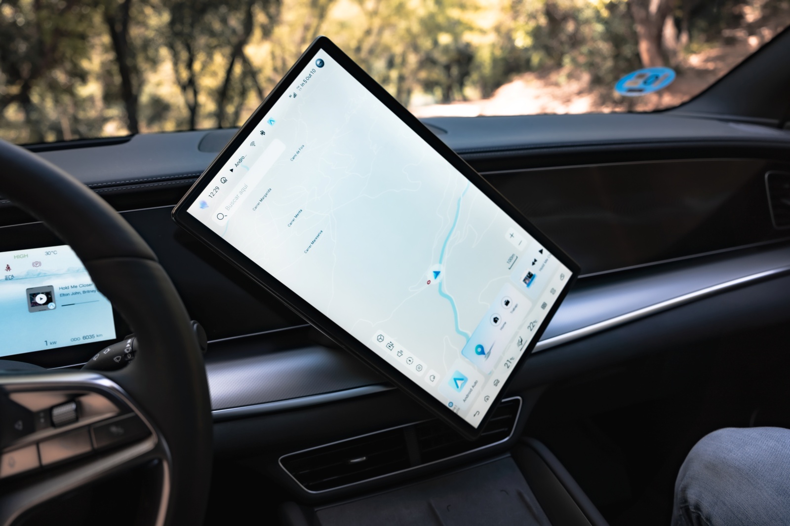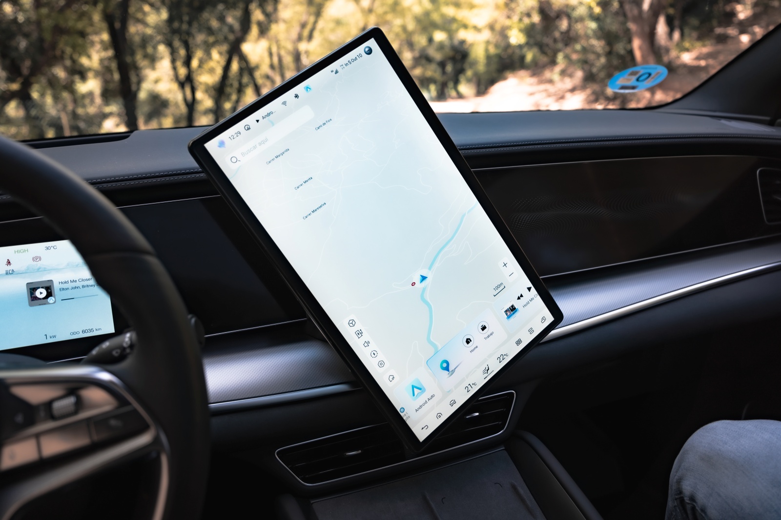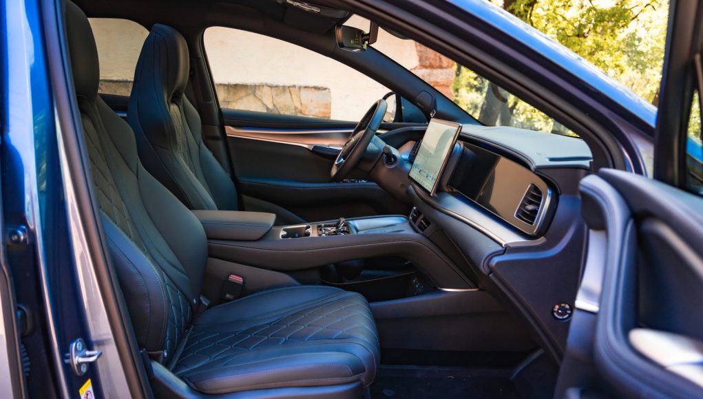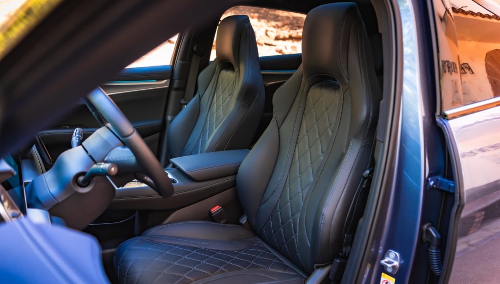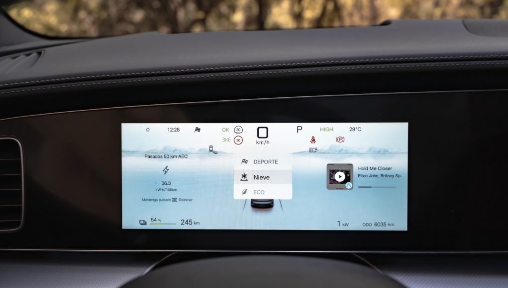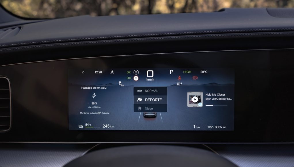 Al abrir la puerta encuentras lo que ya hemos visto en otros modelos de la marca y que más destaca por encima de todo, y son las dos pantallas de 12,3” para el cuadro de mandos y la central que puede cambiar de orientación de 15,6”, así como los asientos delanteros de corte deportivo que dispone reglaje eléctrico, ventilación y calefacción igual que el volante. Son realmente cómodos para el día a día y muy confortables para viajar, pero aun siendo unos “semi backets” les falta algo de agarre en los laterales.