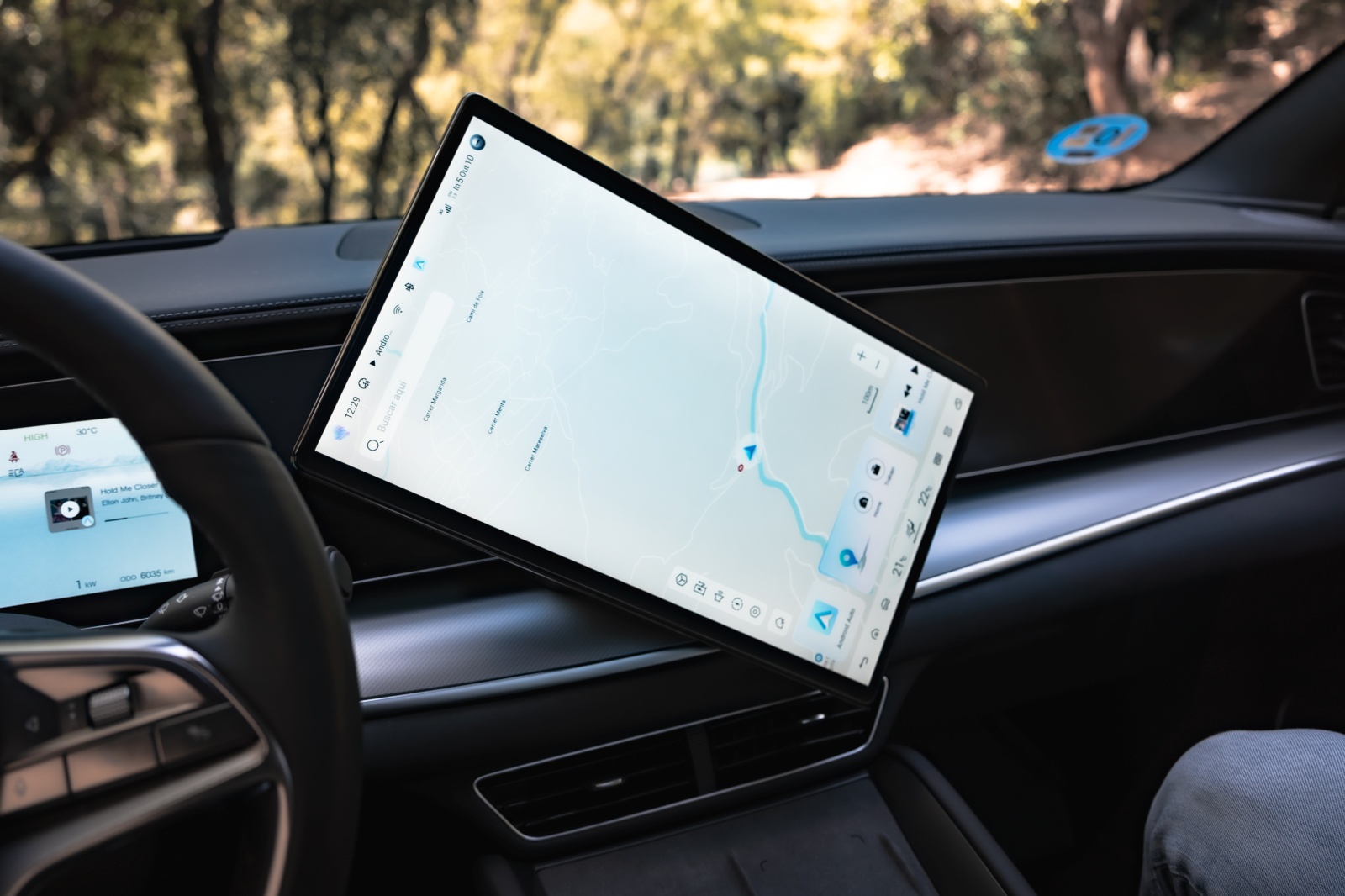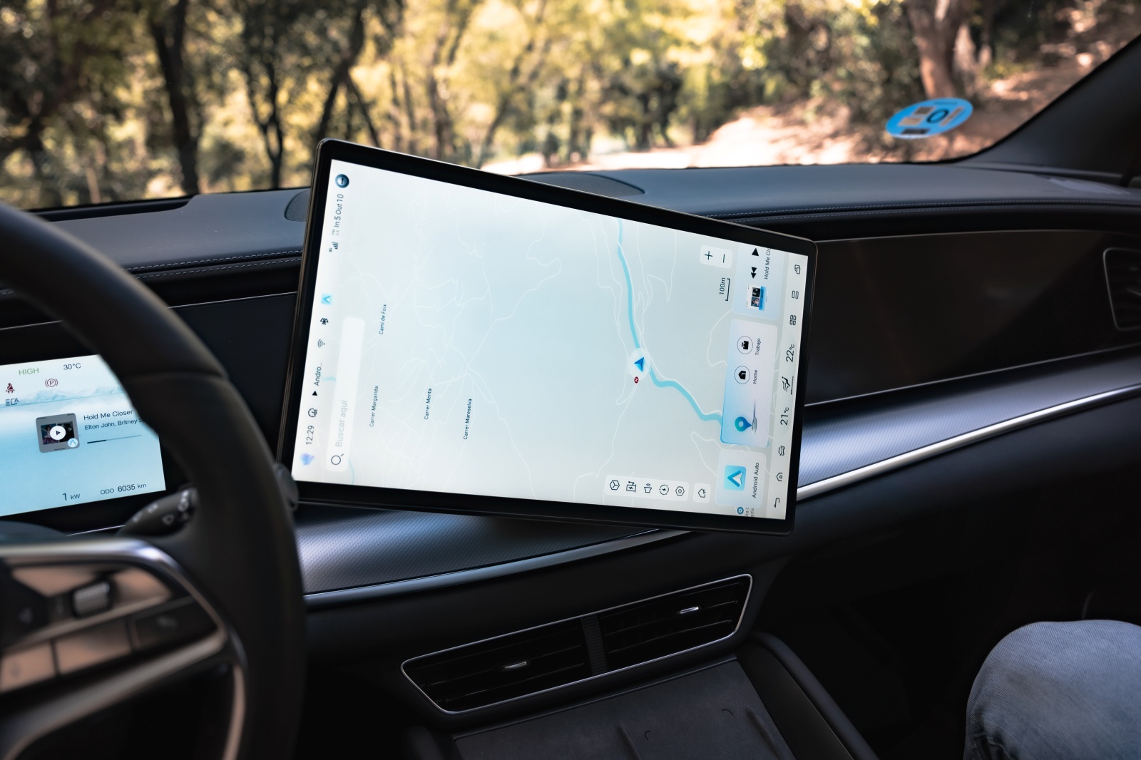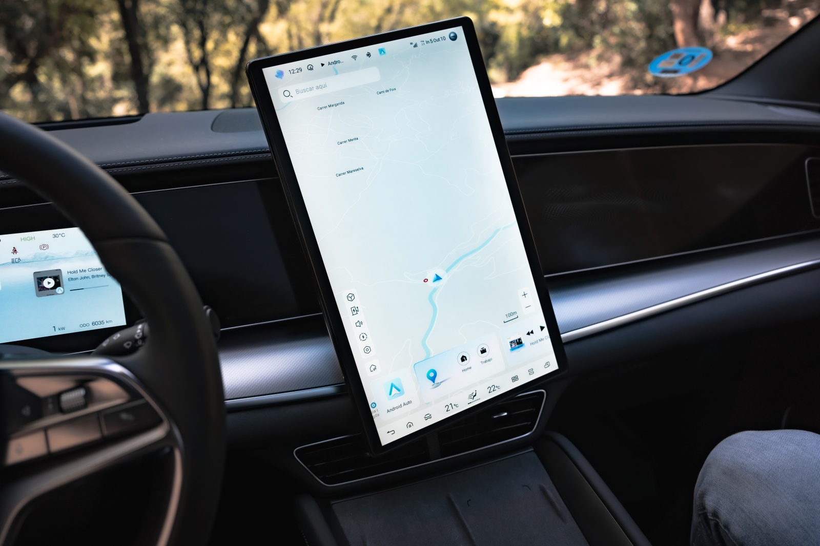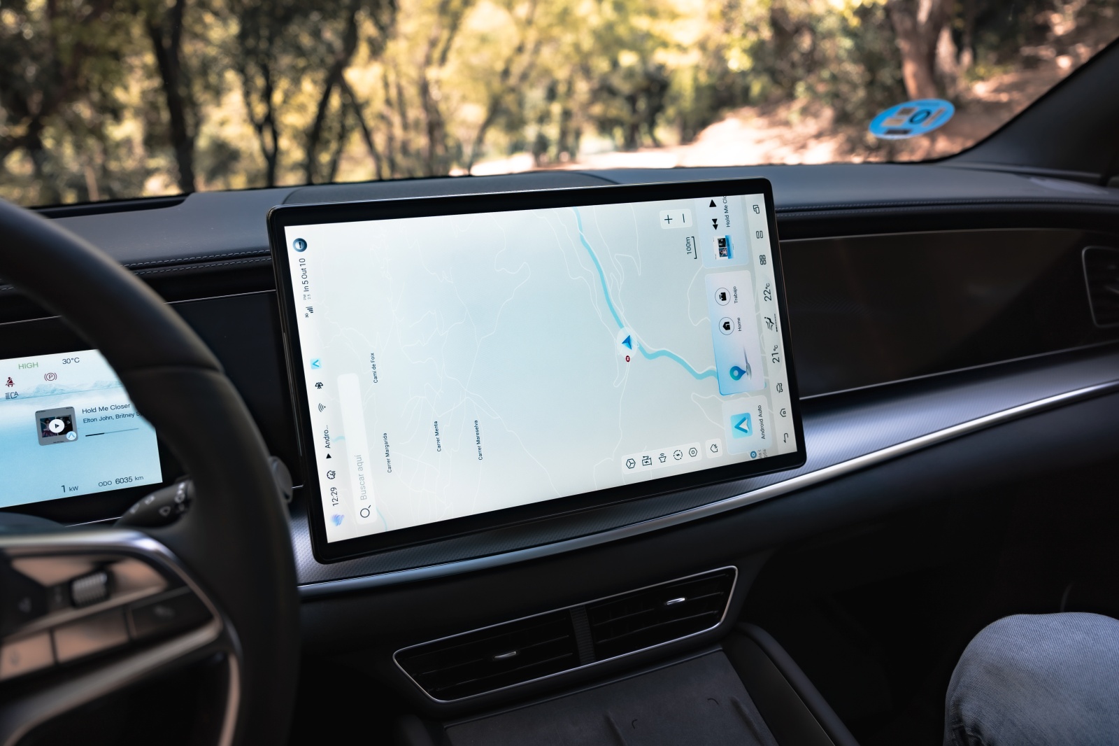 Al abrir la puerta encuentras lo que ya hemos visto en otros modelos de la marca y que más destaca por encima de todo, y son las dos pantallas de 12,3” para el cuadro de mandos y la central que puede cambiar de orientación de 15,6”, así como los asientos delanteros de corte deportivo que dispone reglaje eléctrico, ventilación y calefacción igual que el volante. Son realmente cómodos para el día a día y muy confortables para viajar, pero aun siendo unos “semi backets” les falta algo de agarre en los laterales.