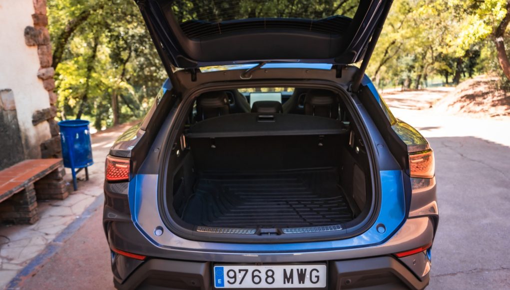 Detrás, el confort escala. La segunda fila es generosa en espacio, con un suelo no excesivamente alto que carece de túnel de transmisión, y respaldos reclinables que suman confort en trayectos largos. De la misma manera que los delanteros disponen calefacción, pero no ventilación. El maletero es sumamente generoso con una capacidad de 520 litros ampliables hasta los 1.789 abatiendo los respaldos de los asientos traseros. Un detalle importante es que bajo el capó delantero encontramos un hueco de 58 litros adicional, donde podemos llevar los cables de carga que tanto entorpecen si no disponemos de doble fondo en el maletero principal.