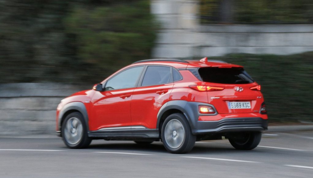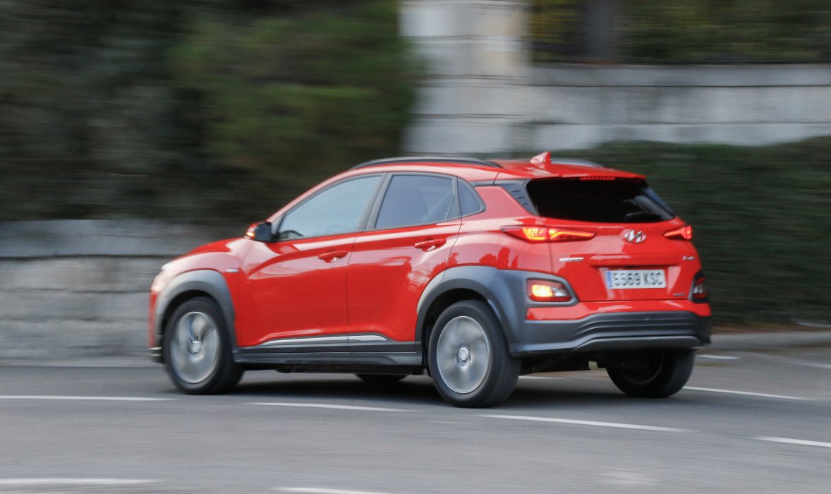 Su dinámica de conducción no es muy diferente a la de cualquier SUV del segmento C, los de tamaño medio. El hecho de la posición de las baterías estén repartidas por el suelo del KONA, hacen que el mismo tenga un centro de gravedad equilibrado, lo que se transmite en un aplomo bastante bueno teniendo en cuenta que este coche no tiene ninguna connotación deportiva, ofrece un paso por curva elevado a la vez que un aplomo de compacto. Su peso de 1.7 toneladas es un lastre, pero no por ello es torpe a la hora de trazar curvas, mas bien nos ha parecido todo lo contrario.