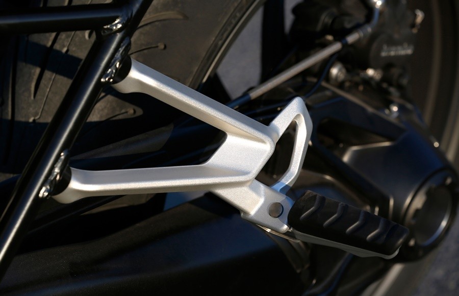 El chasis de doble viga de tubos de acero acoge al motor como elemento autoportante. Guiado de las ruedas mediante horquilla telescópica invertida en la rueda delantera, y EVO Paralever en la posterior.