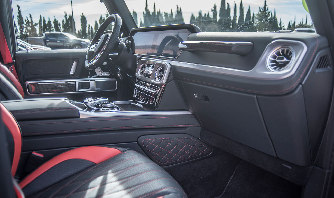 Bajo su pronunciado capó, encontramos un propulsor V8 biturbo firmado por AMG que rinde una potencia de 585 CV y ofrece un par motor de 900 Nm, lo que convierten a esta mole en un cohete de dimensiones épicas. Este nuevo clase G, cuenta por primera vez con un sistema de suspensión delantera independiente, así como de una nueva dirección electromecánica que le otorgan un comportamiento en carretera mucho más confortable y preciso, ya que os podemos asegurar que en conducción deportiva negociar curvas, no es una tarea fácil. Además, sus capacidades off-road han mejorado notablemente como demuestran sus 70 cm de profundidad máxima de vadeo (10 centímetros adicionales).