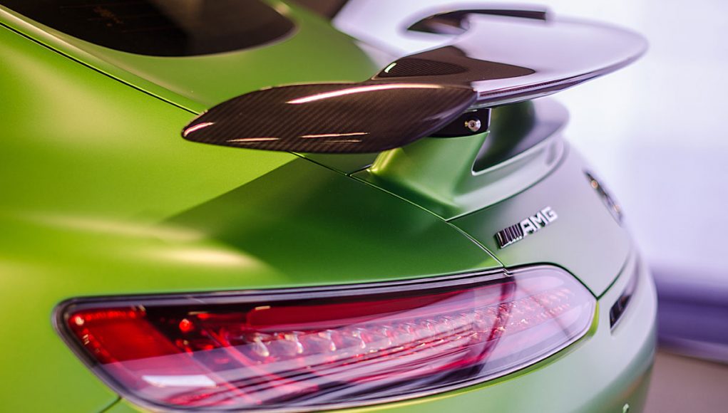El color exterior del AMG GT R, ya es una plena declaración de intenciones de la bestia que tenemos ante nosotros. Cariñosamente, o más bien coloquialmente este color tiende a que este deportivo reciba el nombre de “Hulk”, pues cualidades bestiales no le faltan. En nuestro país, este tono se denomina AMG Light Green Magno y en otros mercados recibe el nombre de AMG Green Hell Magno y cuyo sobre coste, pues se trata de un opcional es de 10.900€. Este nombre hace referencia a como se conoce coloquialmente al circuito de Nürburgring Nordschleife, donde ha sido gestado, y donde obtuvo uno de los mejores tiempos en dar una vuelta a este complicado trazado de 7:10,92 minutos, estando así dentro de los 25 coches que mejor registro han conseguido.