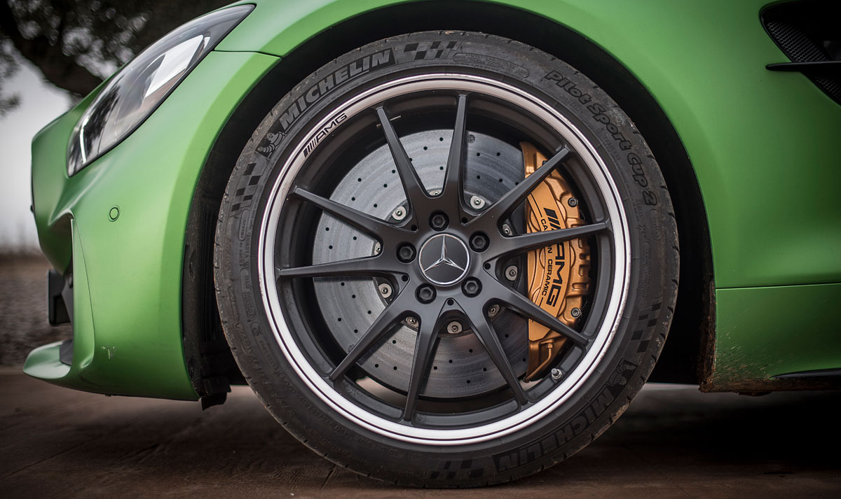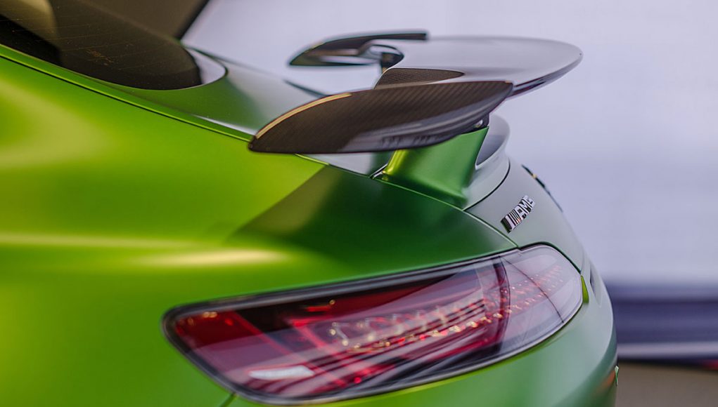 Este coche está pensado para aquellos clientes que no se conformen con tener en su garaje a un miembro más de la familia GT de Mercedes, y para ello, está pensado en que su uso sea en circuito, así que AMG ha trabajado en un sistema de aerodinámica activa, como un pequeño alerón que emerge del faldón delantero por encima de los 100 km/h y que proporciona 40 kg de carga a una velocidad de 250 km/h creado por el efecto Venturi, así como unas tomas de aire que encontramos en los laterales de la parte frontal que dirigen el flujo de aire hacia los pasos de rueda.