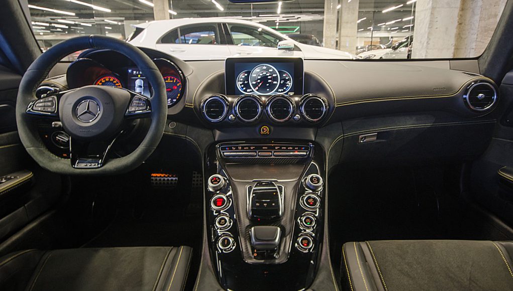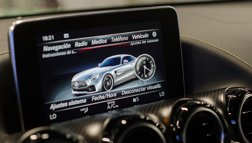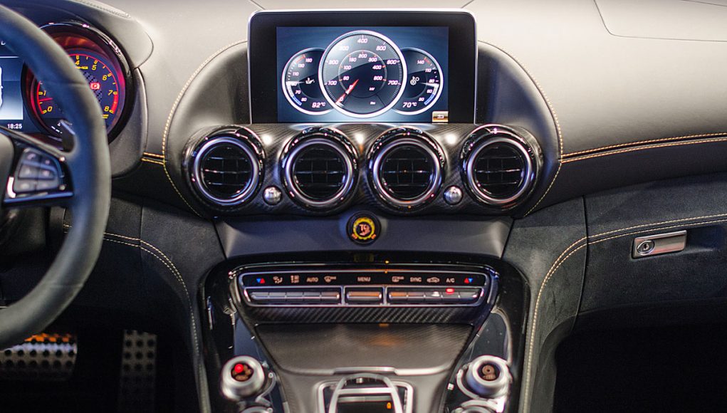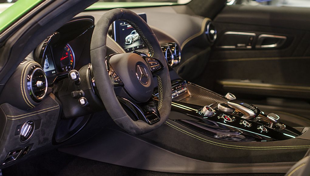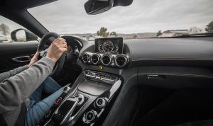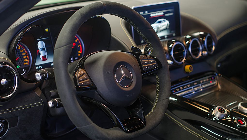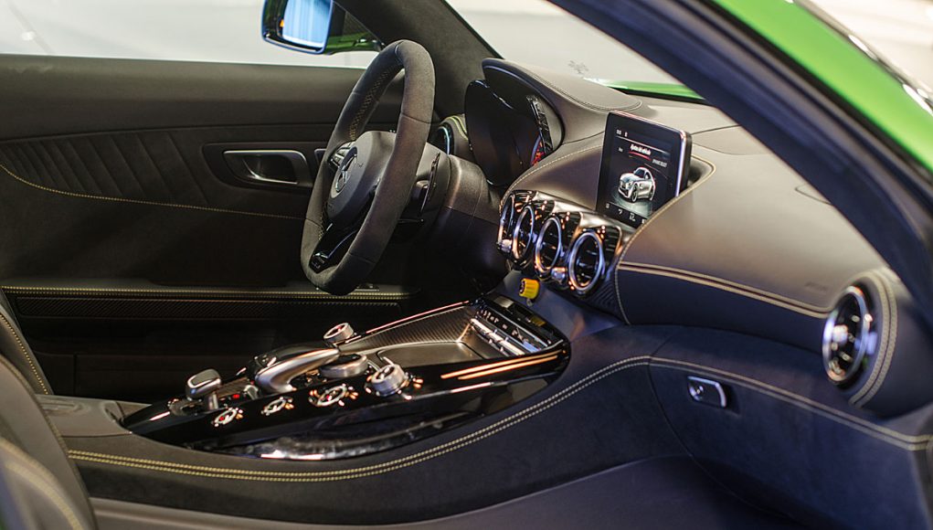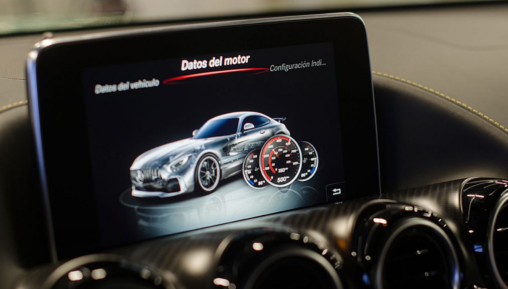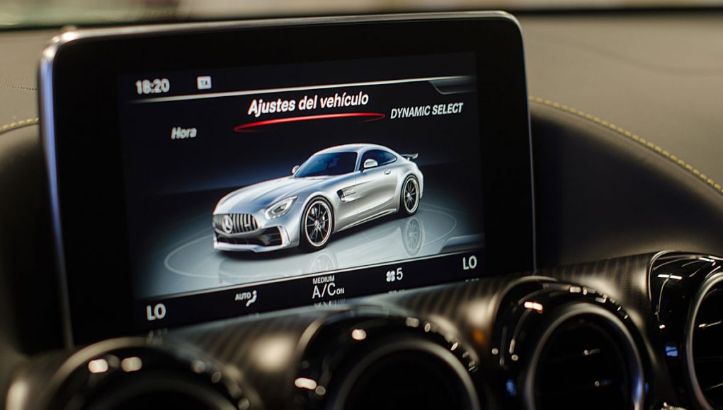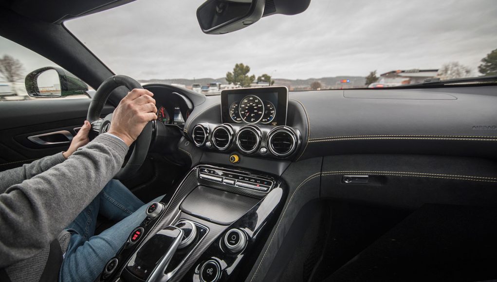 El Cockpit del AMG GT R, ya no dista mucho al de un coche de competición. Tras abrir la puerta lo primero que salta a la vista son los backets tapizados en piel y alcántara con las costuras en contraste que se ajustan al cuerpo como si de un guante a una mano se tratara. Acceder al interior del coche para acomodarse en estos asientos, requiere de un pequeño ejercicio de contorsionismo, al que una vez acostumbrado la maniobra resulta fácil.