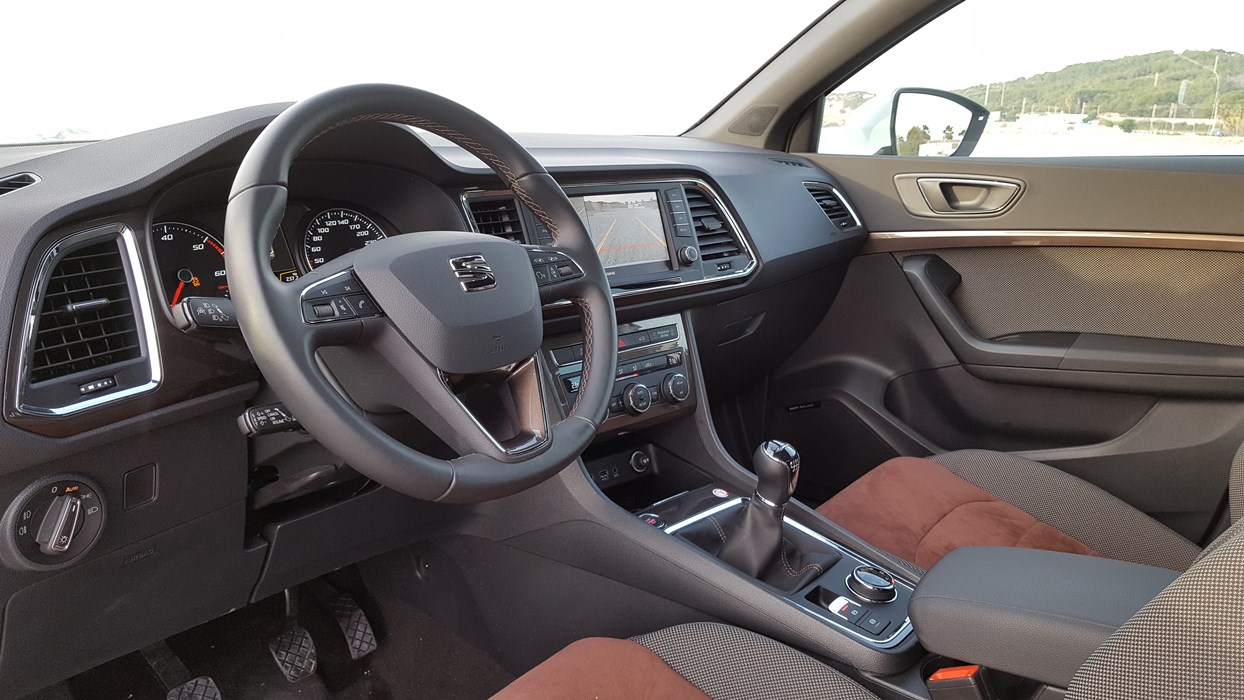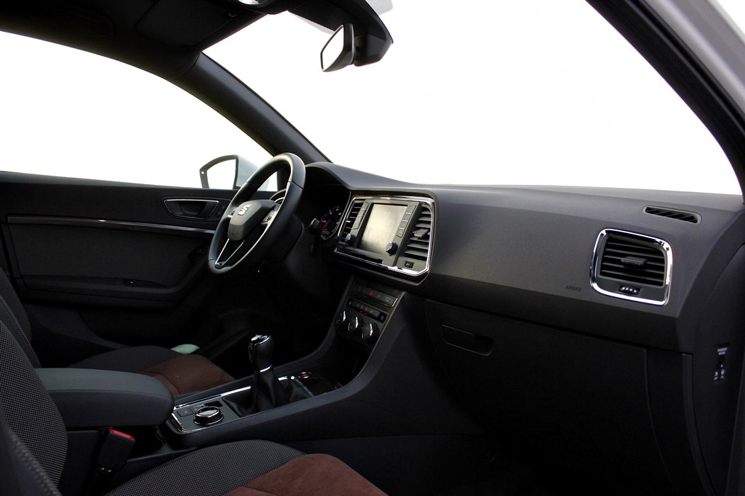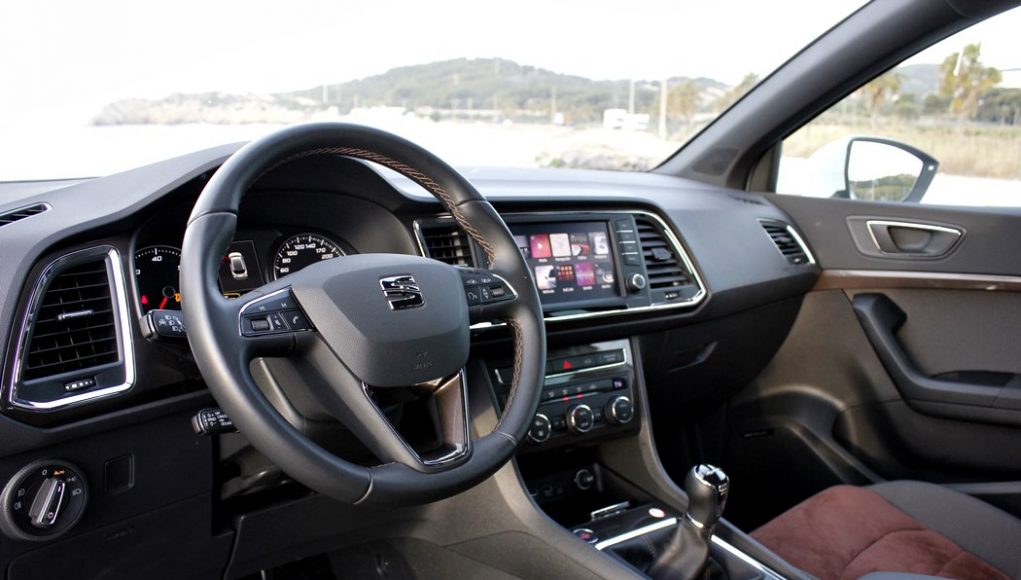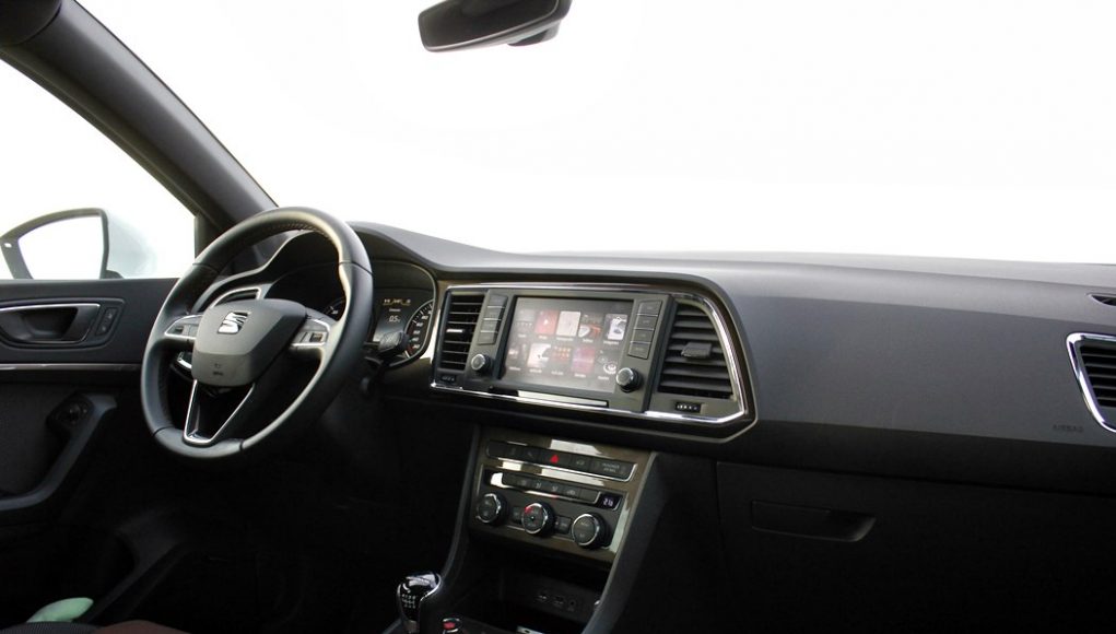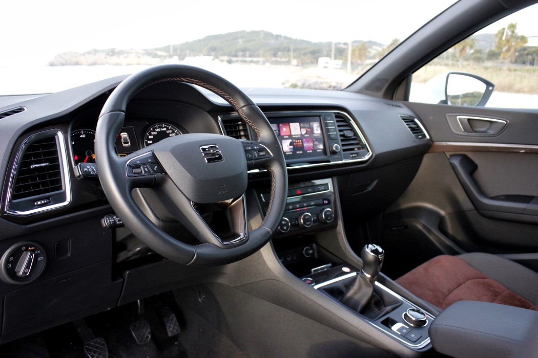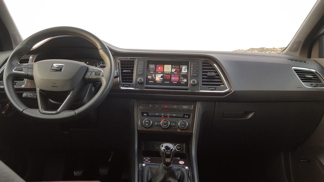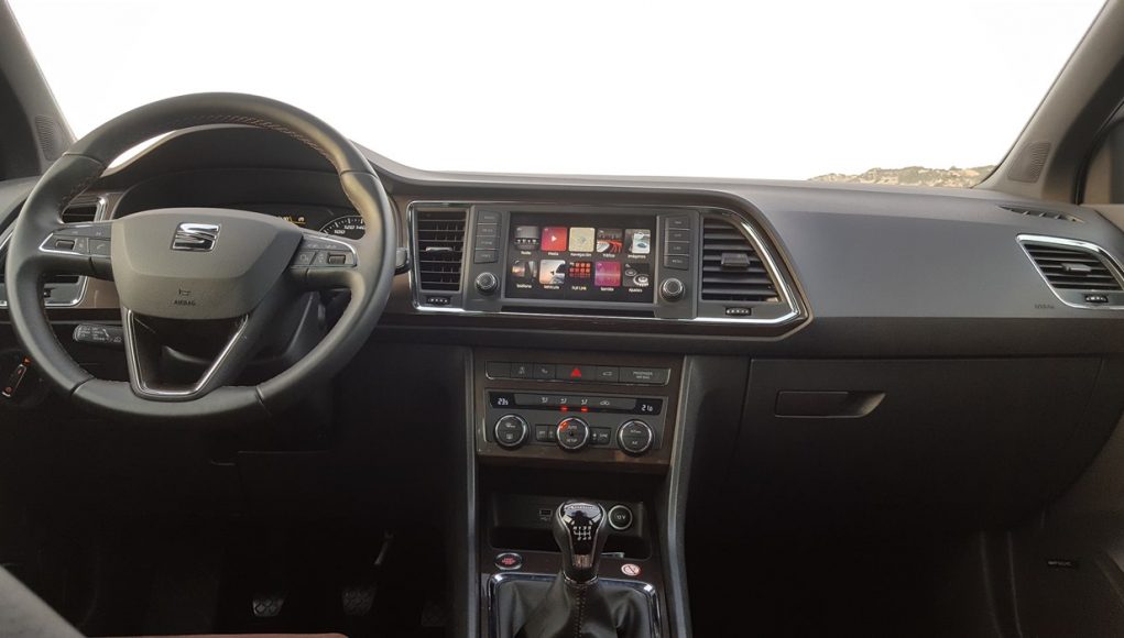 El habitáculo del Ateca, no presenta ninguna novedad, ya que básicamente es como el del León. Todo el salpicadero está orientado ligeramente hacia el conductor, y en lo que a calidad se refiere, se nota el salto y el giro que la marca ha dado en lo que a sus estándares se refiere. El cuadro de mandos con doble esfera y la pantalla intermedia, no difiere del resto de la gama, ofreciendo una información muy completa y efectiva, siendo un apoyo a la pantalla que encontramos en el centro de la consola, en tamaño de 8”.