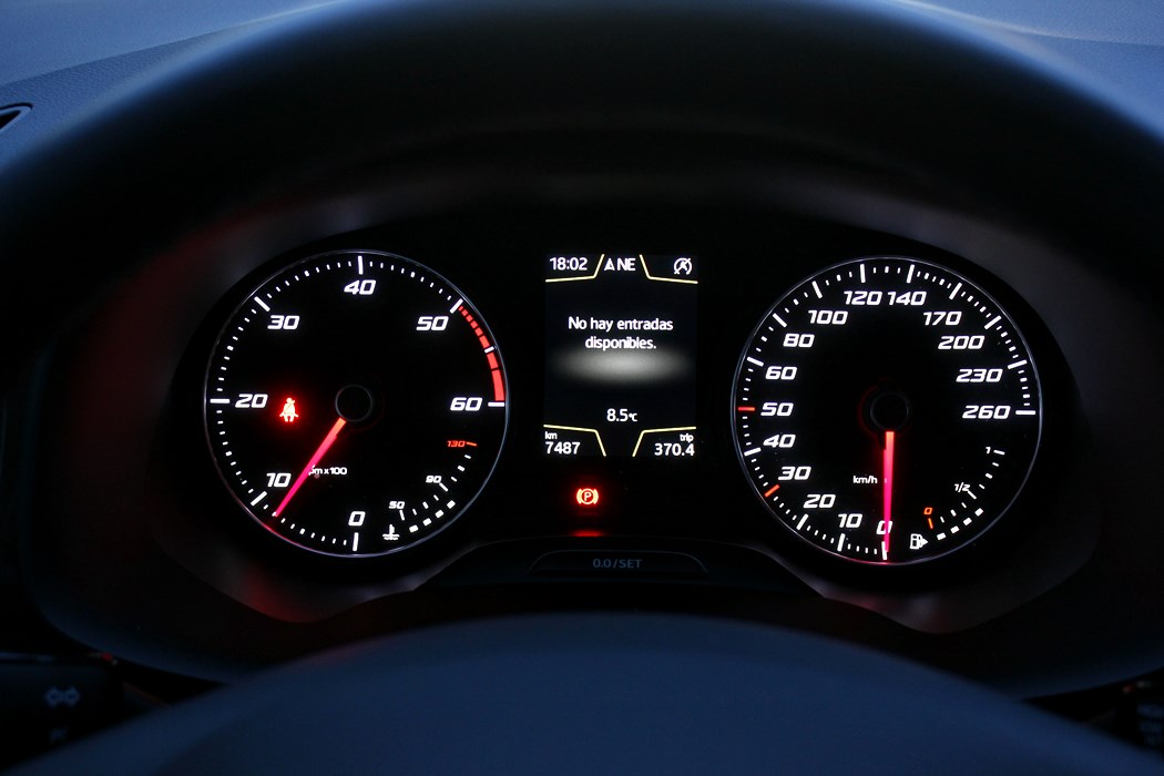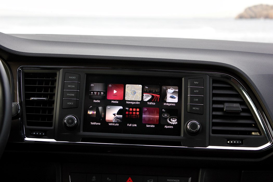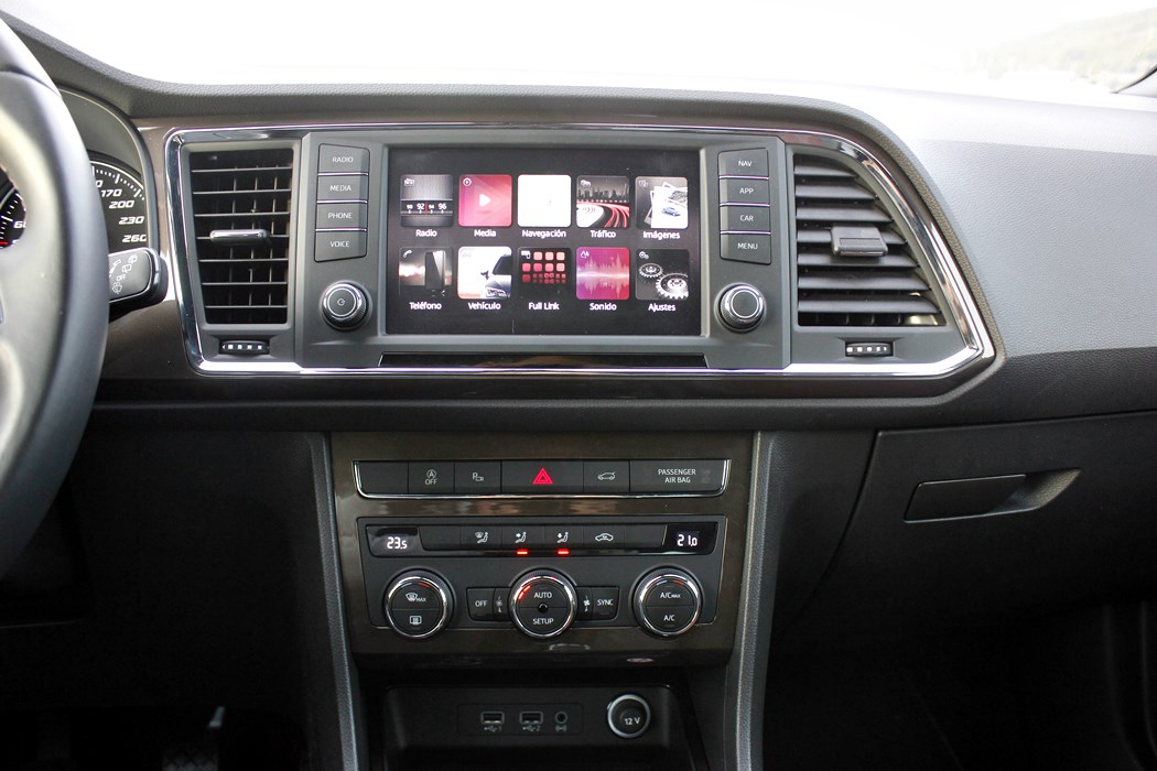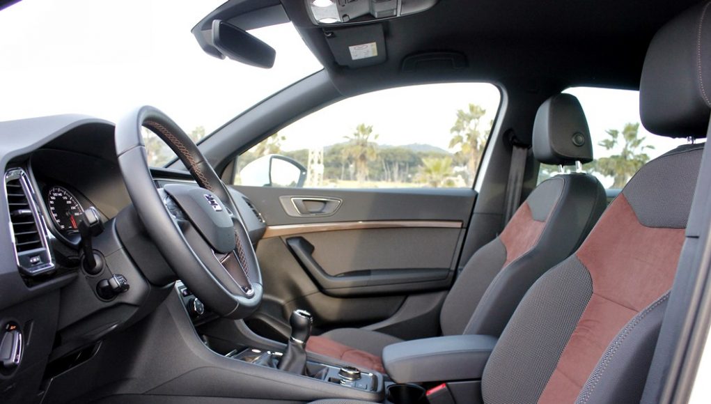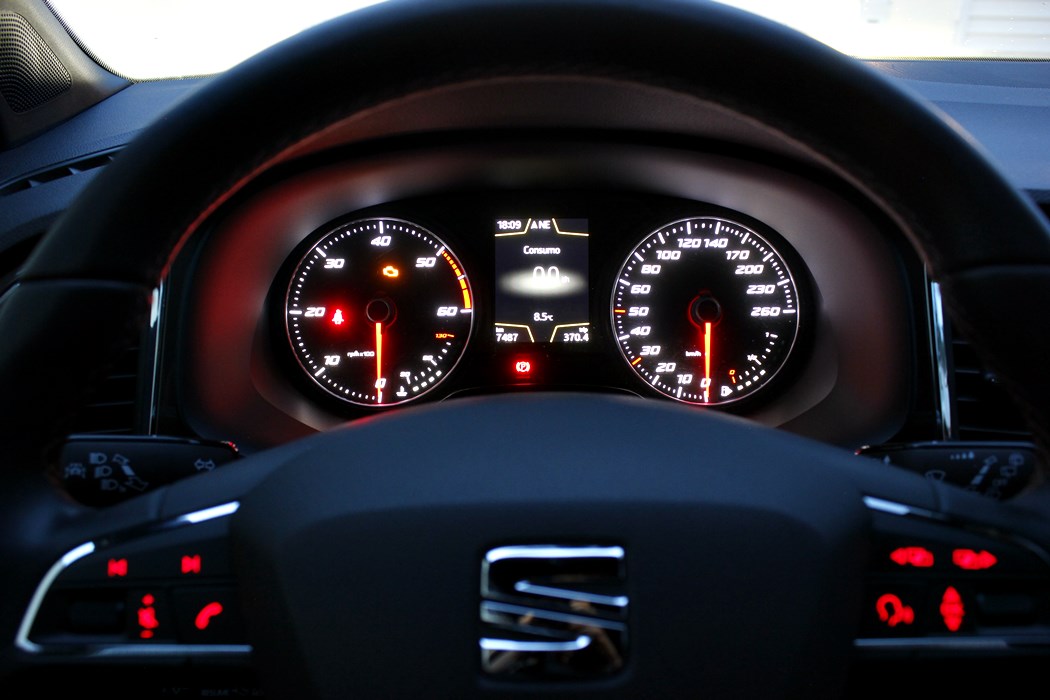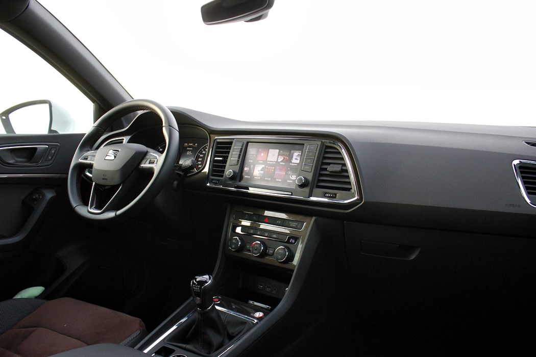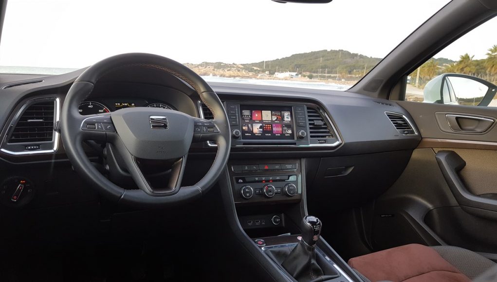El habitáculo del Ateca, no presenta ninguna novedad, ya que básicamente es como el del León. Todo el salpicadero está orientado ligeramente hacia el conductor, y en lo que a calidad se refiere, se nota el salto y el giro que la marca ha dado en lo que a sus estándares se refiere. El cuadro de mandos con doble esfera y la pantalla intermedia, no difiere del resto de la gama, ofreciendo una información muy completa y efectiva, siendo un apoyo a la pantalla que encontramos en el centro de la consola, en tamaño de 8”.