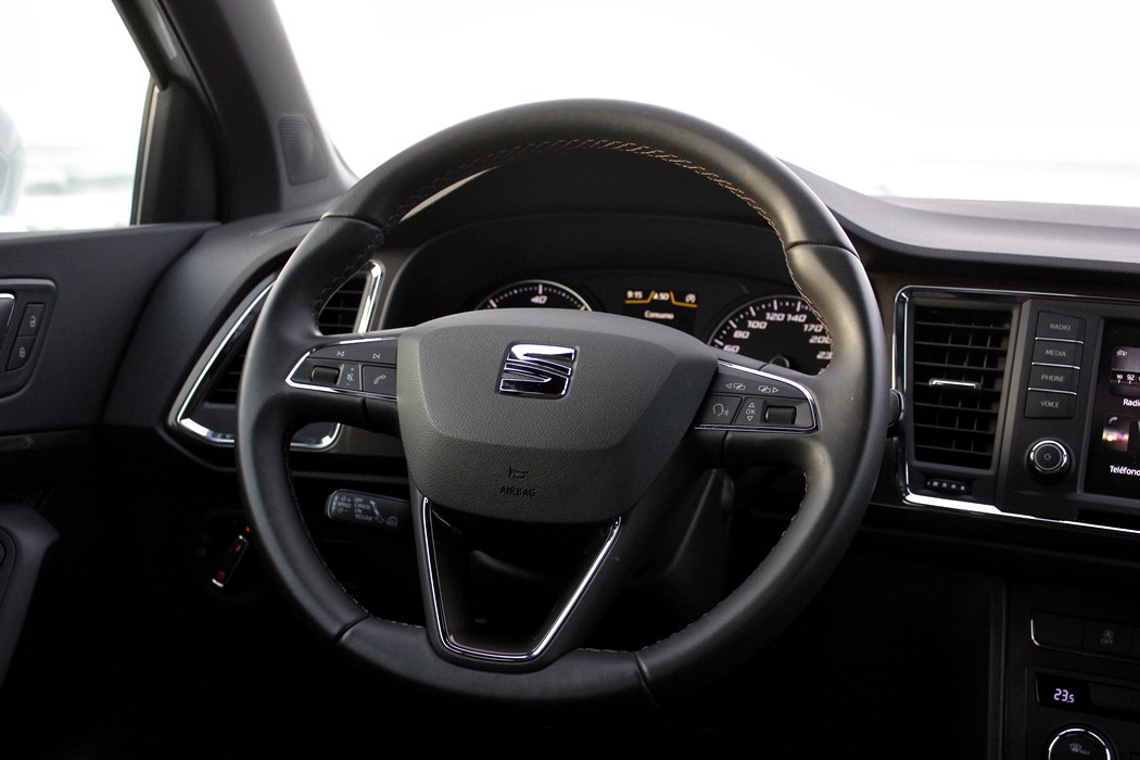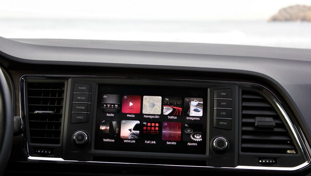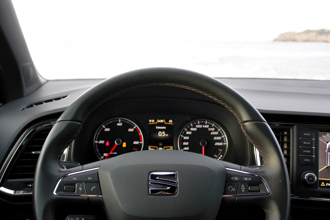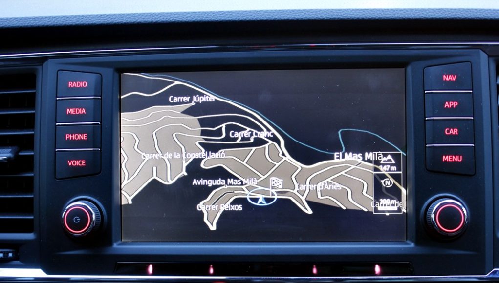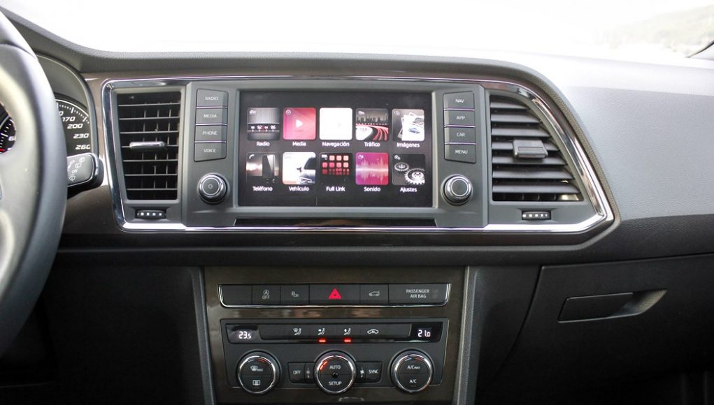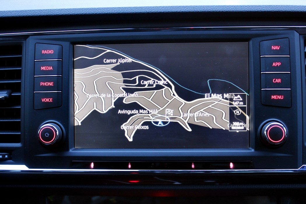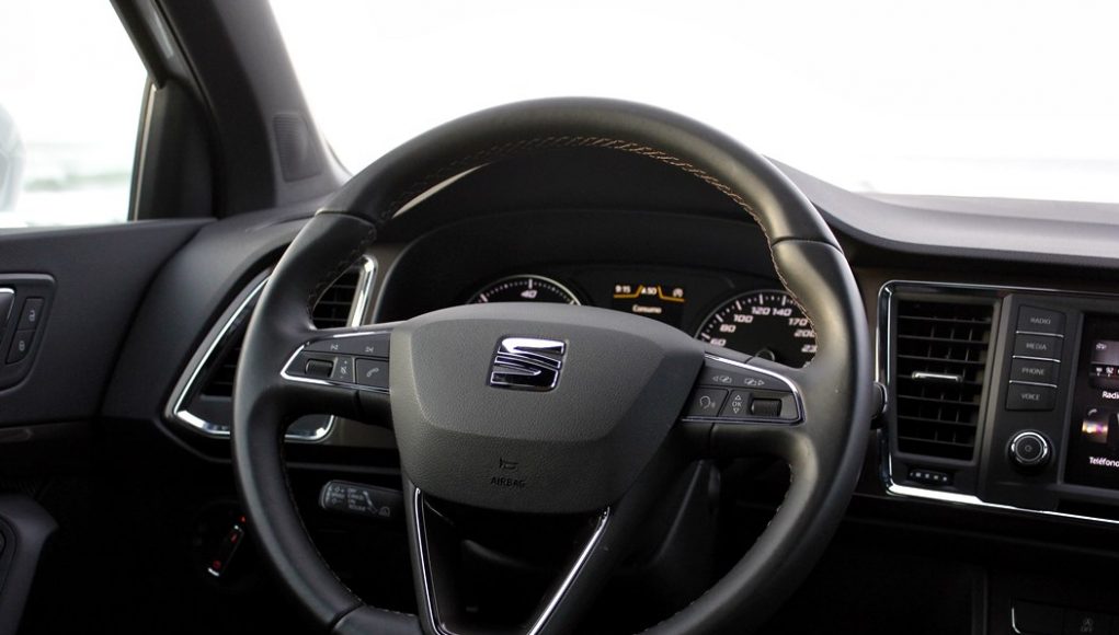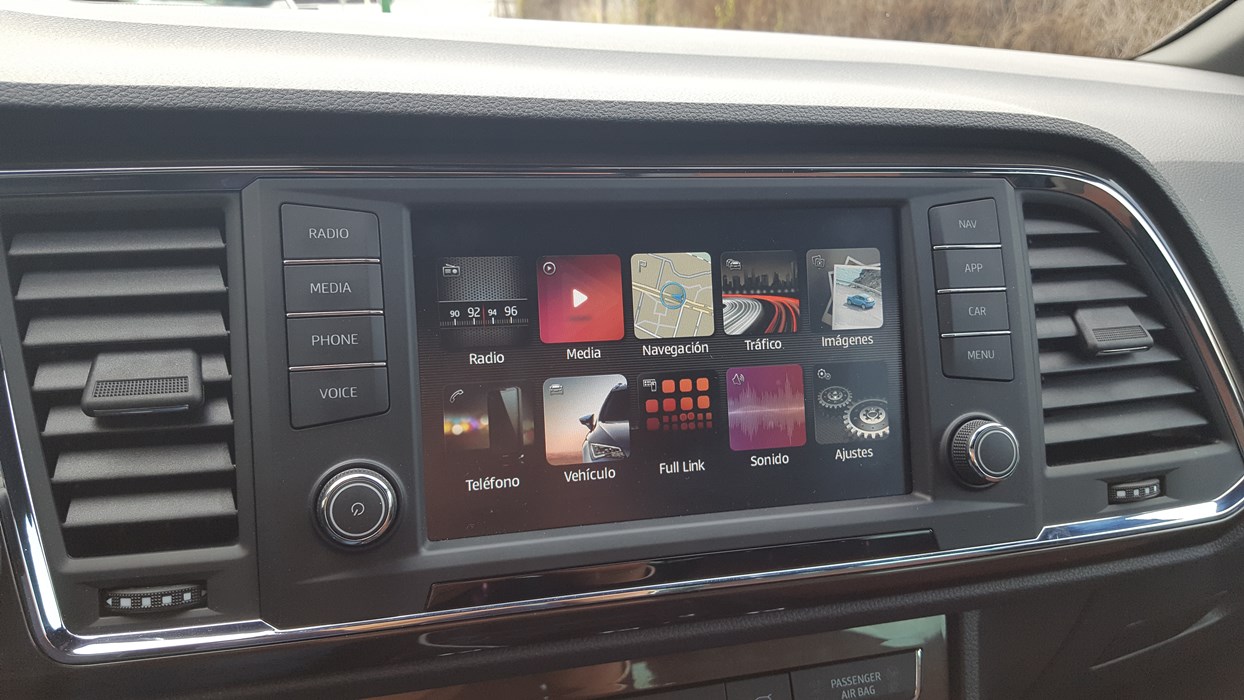 El habitáculo del Ateca, no presenta ninguna novedad, ya que básicamente es como el del León. Todo el salpicadero está orientado ligeramente hacia el conductor, y en lo que a calidad se refiere, se nota el salto y el giro que la marca ha dado en lo que a sus estándares se refiere. El cuadro de mandos con doble esfera y la pantalla intermedia, no difiere del resto de la gama, ofreciendo una información muy completa y efectiva, siendo un apoyo a la pantalla que encontramos en el centro de la consola, en tamaño de 8”.