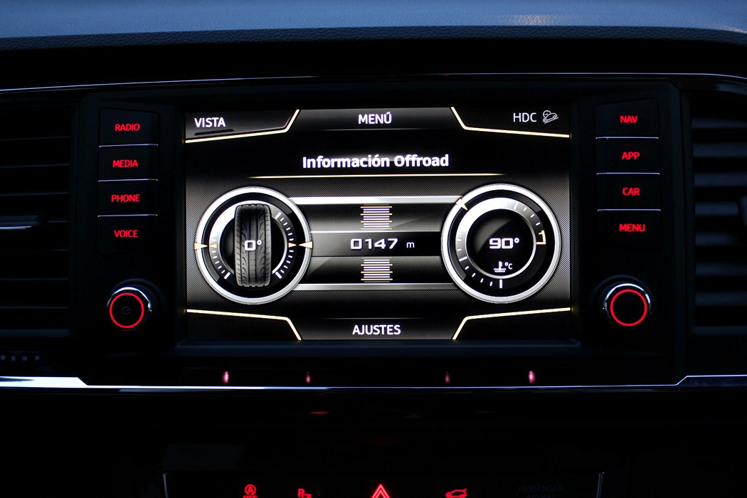 No quisimos desaprovechar la ocasión de poner a prueba al Seat Ateca fuera del asfalto, y aunque con neumáticos 100% de carretera, nos adentramos en una pista forestal por la que condujimos durante unos 25 kilómetros con el modo off-road activado, lo que permite alguna que otra diablura al volante, ya que el control de tracción se desactiva automáticamente, para permitir, ligeros deslizamientos, aunque controlados electrónicamente. La altura libre al suelo, facilita la rodadura por pistas, pero quizás queda en entredicho si tienes que salvar alguna trialera o alguna que otra rampa. El sistema control de descenso HDC, es muy efectivo, ya que te permite dejar el coche con una marcha engranada para bajar una pendiente sin tener que tocar ni freno ni acelerador.