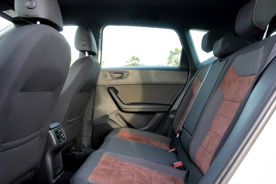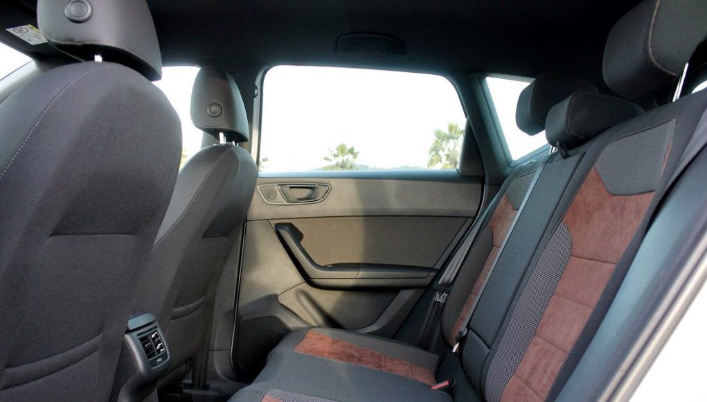 Las plazas traseras, pueden albergar 3 personas, aunque como ya es costumbre en los compactos y estos SUV de tamaño medio, la plaza de en medio es para niños. Los asientos son cómodos, y disponen de un espacio generoso con respecto a los asientos delanteros. Una de las pegas que tiene el Ateca, es que los asientos traseros no son correderos, lo que le permitiría aprovecha mejor el espacio del maletero cuando las plazas traseras no están ocupadas.