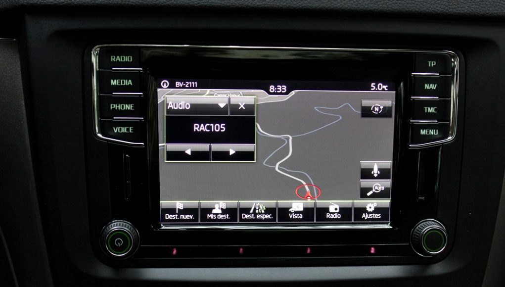 El cuadro de mandos está presidido por dos esferas separadas por una pantalla digital que hace de ordenador de a bordo. En el centro de la consola, encontramos una pantalla táctil de 8”, desde la que se maneja todo el sistema de infoentretenimiento y que dispone de la función mirrror link, para una conexión total con nuestro smartphone.