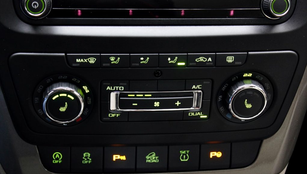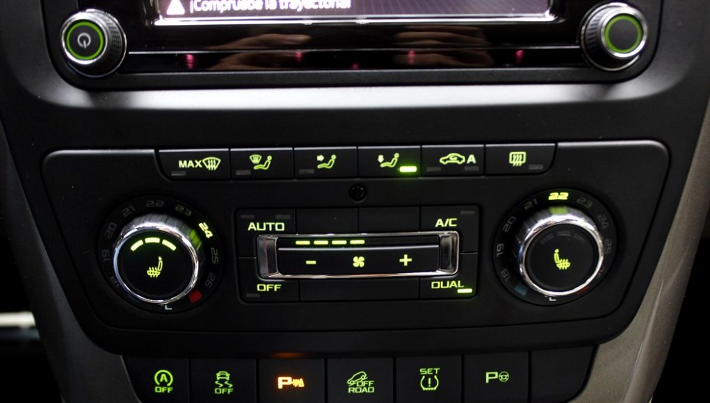 Bajo el climatizador, que es bizona, y del que ya se nota algo el paso del tiempo por su diseño austero, encontramos una botonera para conectar y desconectar el sistema auto Start/stop, el control de tracción, el park assist, configurar la presión de los neumáticos y activar el modo de conducción off road, que al pulsarlo activa una serie de ayudas para la conducción fuera de asfalto, entre ellas, una ayuda al ascenso o descenso de pendientes pronunciadas, y un programación específica del funcionamiento del sistema ABS, control de tracción y diferencial.