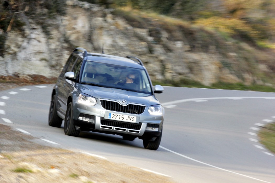 En carretera, el Yeti es un coche cómodo de conducir, aun siendo el tarado de las suspensiones algo blando, no muestra excesivos balanceos en las curvas, Los neumáticos de serie en medida 225/50/17″ también ayudan a conseguir mayor confort en todo tipo de vías, a la vez que son un buen calzado si quieres animarte en alguna carretera de curvas.
