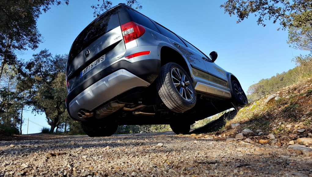 El sistema de tracción 4×4 del Yeti, funciona mediante un embrague acoplable HALDEX, que envía fuerza al eje trasero automáticamente si denota una pérdida de tracción, ya que, en circunstancias normales, la tracción es delantera. Este sistema, es realmente eficiente para su uso offroad, aunque también para conducción en asfalto es un plus de seguridad.