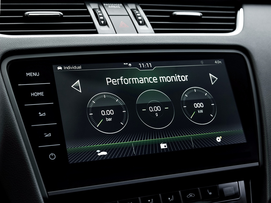 Los sistemas de Infoentretenimiento aseguran protección y entretenimiento La seguridad y el entretenimiento son proporcionados por los nuevos sistemas de Infoentretenimiento. Hay tres componentes de hardware disponibles: los sistemas de música Bolero (de serie), así como los sistemas de información y entretenimiento y navegación Amundsen y Columbus. El ŠKODA OCTAVIA RS 245, cuenta con una pantalla digital de inicio. Las pantallas táctiles capacitivas reaccionan a los toques más suaves. Además, las pantallas de los sistemas opcionales de información y entretenimiento Amundsen y Columbus con su nuevo diseño cristalino perfeccionan aún más el salpicadero de alta calidad.