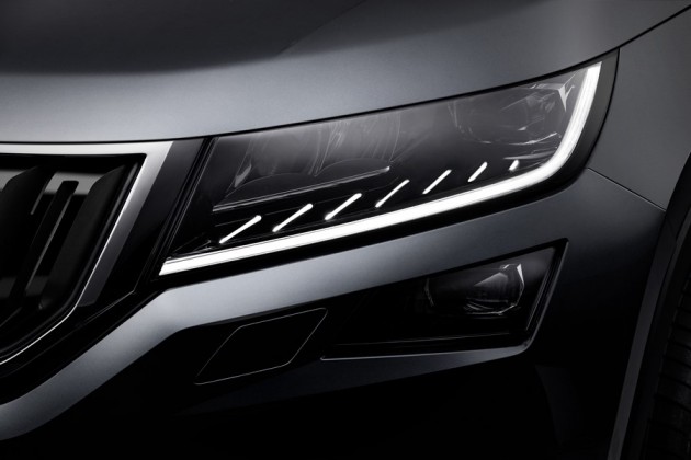 nuevo-koda-kodiaq-descubriendo-un-nuevo-mundo (32)Todas las líneas del ŠKODA KODIAQ son limpias, claras y precisas y esta característica destaca especialmente en la línea de los hombros. Las dobles líneas horizontales en el frontal simbolizan protección y robustez. La amplia y tridimensional parrilla del radiador, llama la atención y transmite robustez. Por otra parte, los dobles faros estrechos crean una sorprendente cara de cuatro ojos y destacan por su estructura cristalina que también se aplica a las luces traseras. Aquí, el responsable de diseño de ŠKODA Jozef Kabañ y su equipo se han inspirado en la tradición del cristal Checo que también se refleja en la interacción de luces y sombras de las superficies altamente contorneadas de este SUV.