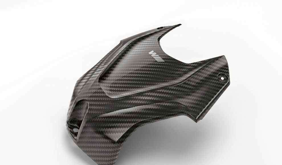 En particular, se ofrecen piezas de fibra de carbono ligeras y robustas para la carrocería y las áreas de carenado: cubierta de Airbox M de carbono, protector de cadena M de carbono junto con cubierta de rueda trasera M de carbono, cubierta de rueda delantera M de carbono, cubierta de piñón M de carbono, cubierta del depósito de combustible M de carbono izquierda/derecha, panel lateral del carenado M de carbono superior izquierdo y derecho. La nueva S 1000 RR también puede adaptarse perfectamente de forma ergonómica al tamaño del piloto, gracias a tres variantes de asiento: asiento deportivo M, asiento M alto, asiento M bajo.