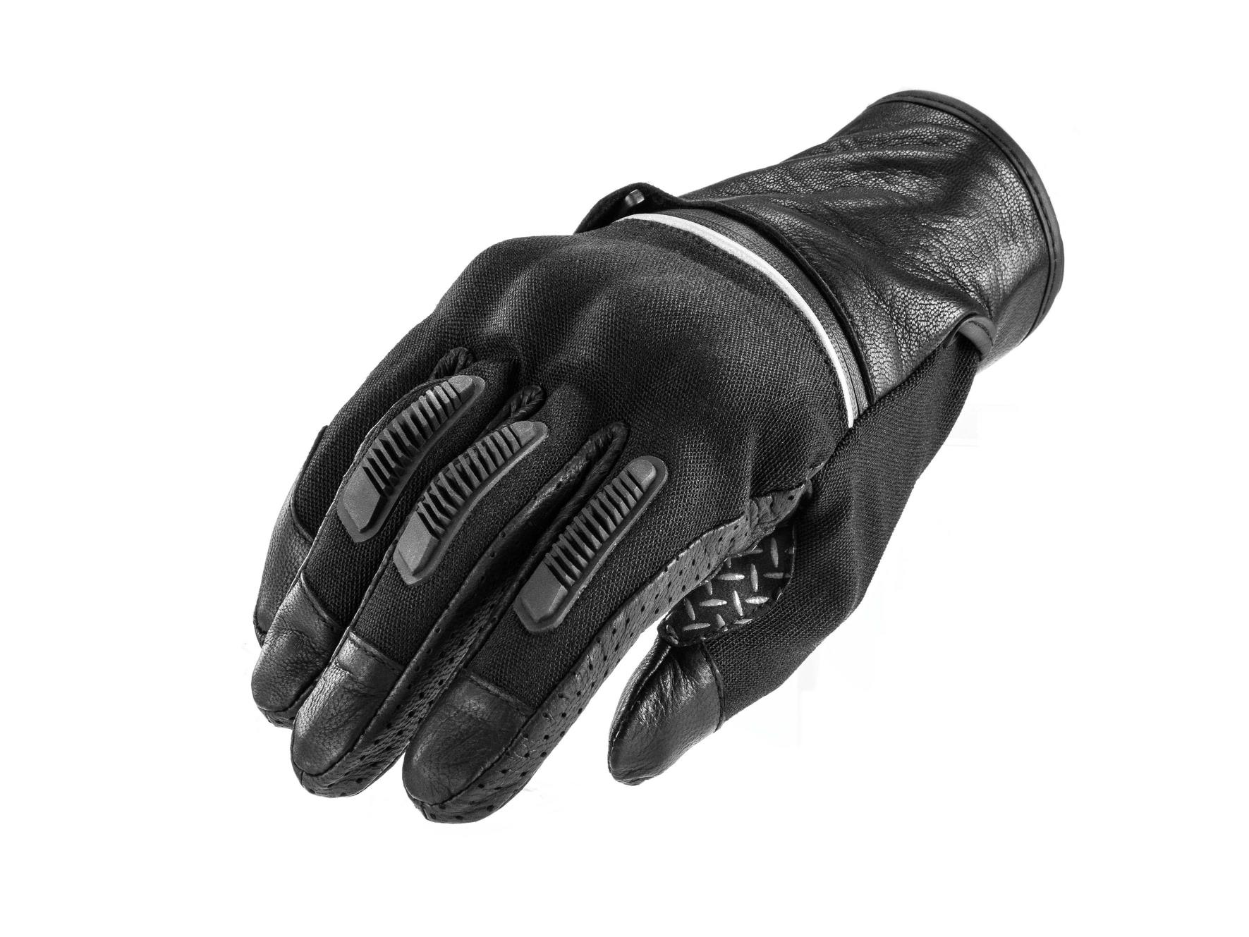 - Guantes IRVINE: En piel y tejido, protector pero cómodo y fácil de poner, para utilizarlo todos los días. Disponibles en tallas de la S a la XXL, en color: negro. Precio: 59,95.-€ (IVA incluido).