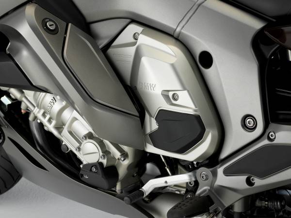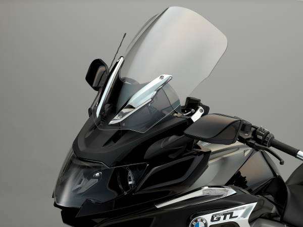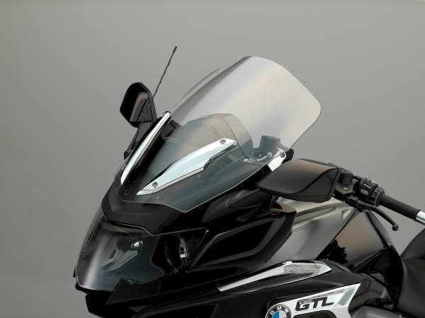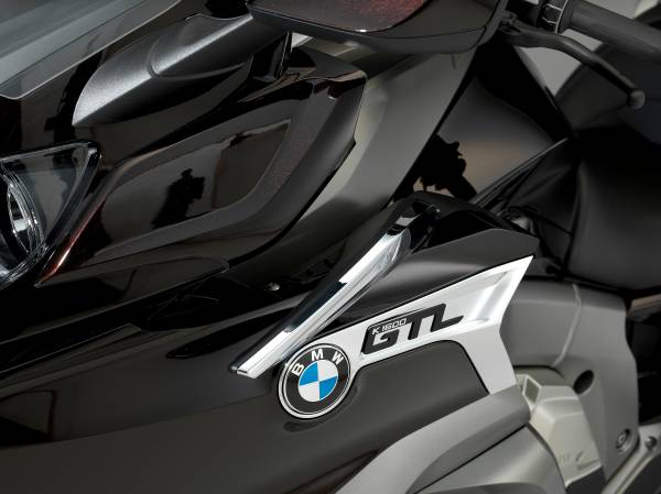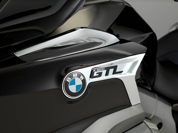 El aspecto de la nueva K 1600 GTL es especialmente llamativo gracias a sus líneas más elegantes y dinámicas. El carenado lateral se ha rediseñado desde los deflectores aerodinámicos más amplios y eficientes hacia abajo. Por ejemplo, se han llevado hacia atrás para una mejor protección contra el viento y la climatología adversa. También hay deflectores de viento para proteger las manos del piloto de forma más efectiva. Los dos retrovisores también son de nuevo diseño y disponen de áreas agrandadas con una sección asférica para mejorar la visibilidad del tráfico que circula detrás. El soporte del emblema y designación del modelo se presentan en cromado exclusivo.