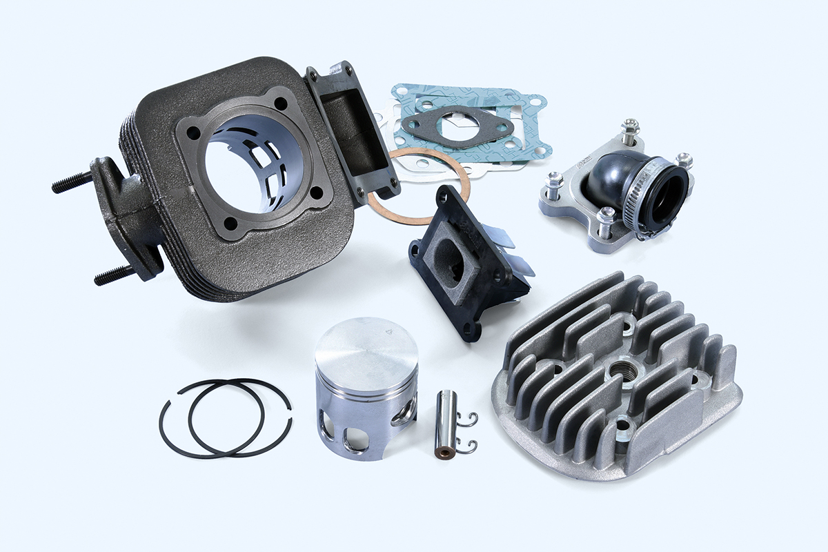 - Culata de competición con junta de cobre, pistón de doble segmento, juntas de base de 0,2 y 0,3 mm para personalizar el squish.
