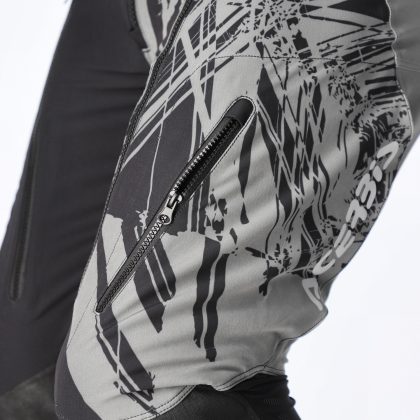 Fabricados en tejido totalmente elástico, ligero y resistente, los Rally Race IN cuentan con inserciones técnicas de AX Suede en la parte interior de las rodillas, que garantizan protección y estabilidad incluso en las fases de conducción más exigentes. Dos amplias aberturas frontales ajustables con cremallera garantizan una ventilación eficaz durante la actividad, mientras que los dos bolsillos cargo aplicados en el muslo hacen que la prenda sea práctica y funcional. La zona de la pantorrilla está enriquecida con inserciones de malla que favorecen la transpirabilidad, y los ajustes en las caderas con cinta y velcro permiten adaptar la prenda a cualquier tipo de físico.