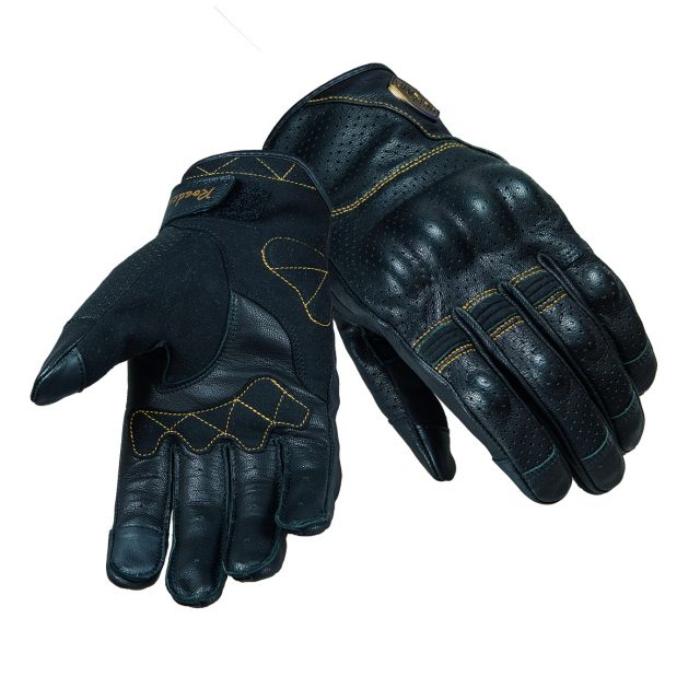 Dispone de un forro interno de tricot para un máximo confort y la piel del dorso está perforada para facilitar la ventilación en los días calurosos. En el aspecto de seguridad, destaca la protección de poliuretano que incorpora en nudillos y dedos, así como los refuerzos de microfibra en las zonas de impacto de la palma de la mano. Para un ajuste perfecto a la mano y mayor comodidad en marcha, los dedos están precurvados y llevan inserciones elásticas de nubuck de piel de cabra. Además en las puntas encontramos un tejido capacitivo para poder usar dispositivos de pantallas táctiles sin tener que quitarse el guante. De puño corto y diseño vintage, estos guantes equipan un cierre ajustable de velcro y una lengüeta de tiro en la muñeca, que facilita el descalzado. Están disponibles en color negro y en tallas que van desde la XS a la XXL por un precio de 64,5 €.