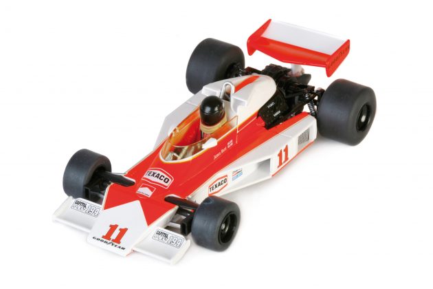 Cierra el set de coches de leyenda el mítico McLaren M23 de James Hunt, diseñado por Gordon Coppuck y que fue desarrollado a partir de la base del McLaren M16 que participaba en las 500 millas de Indianápolis al que le dotó con un motor Ford Coswoth DFV de 490 CV con el que James Hunt ganó su único campeonato de F1.