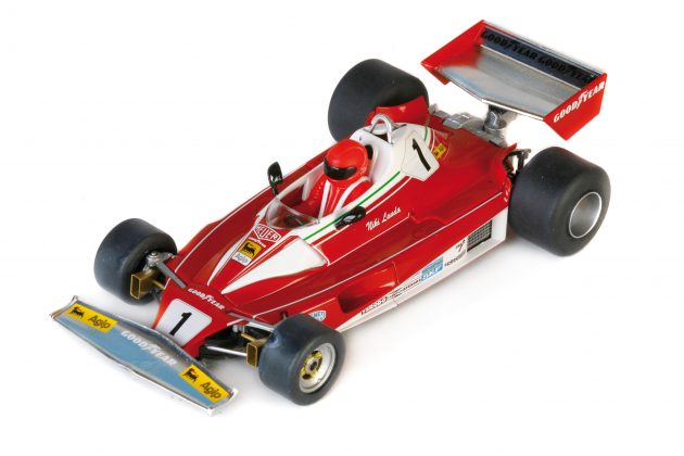 En este set, encontramos el Ferrari 312 T de Nicky Lauda que Charles Leclecc estrelló contra el muro en La Rascasse del Gran Premio Histórico de Mónaco del año 2022. Este coche fue con el que Lauda ganó su primer mundial de F1 en el año 1975 y además fue el primer F1 moderno en superar los 500 cv de potencia.
