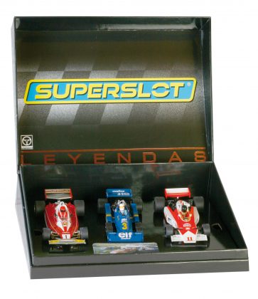 El exclusivo Set de Superslot con el Ferrari 312T de Nicky Lauda, el Tyrell P34 de Jody Scheckter y el McLaren M23 de James Hunt lo puedes encontrar por 185 €.